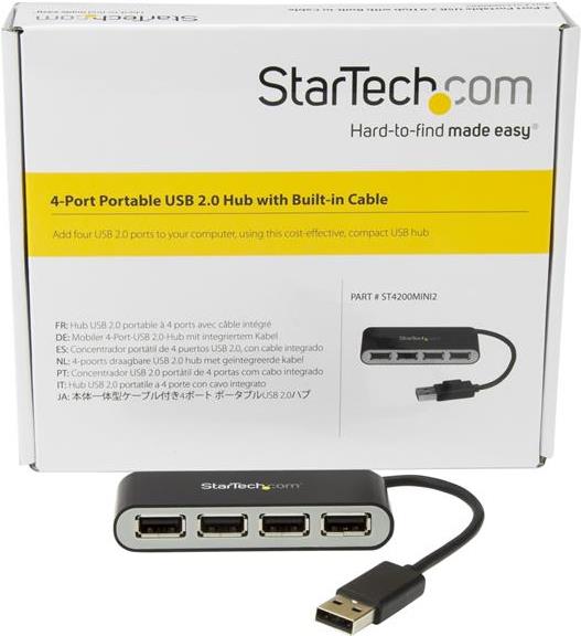 | Produktbeschreibung | StarTech.com 4-Port Portable USB 2.0 Hub with Built-in Cable - Hub - 4 Anschlüsse |