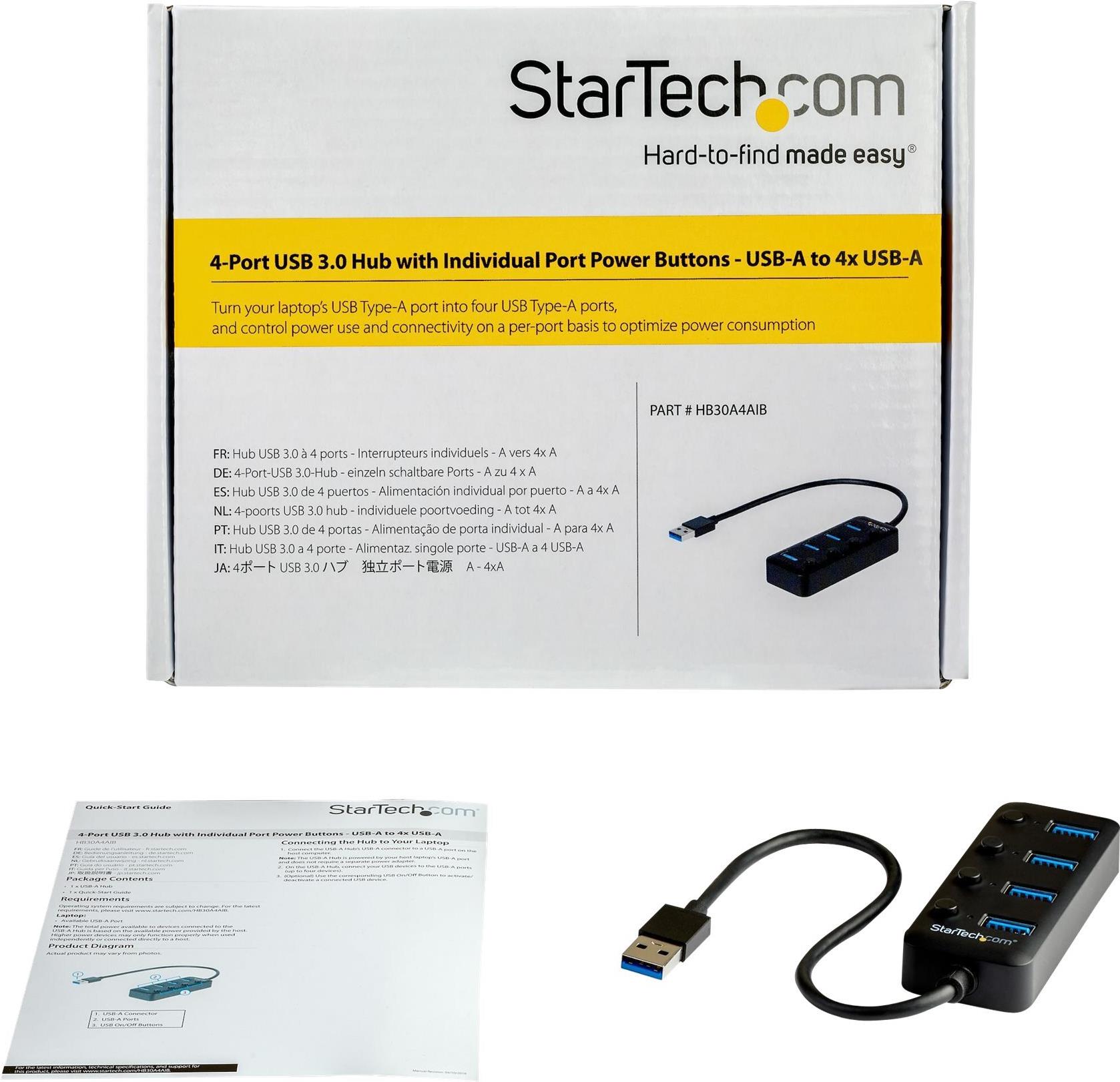 StarTech.com 4-Port USB 3.0 Hub - 4x USB-A - Individual On/Off Switches - Hub - 4 Anschlüsse |