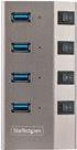 Dieser 4-port USB 3.2 Gen 1 (5Gbit/s) Hub fügt einem Computer vier USB Typ-A Anschlüsse hinzu, wobei jeder Anschluss über einen individuellen Ein/Aus Schalter verfügt. Der USB Hub wird über einen inklusiven Netzteil Adapter mit Eigenstrom betrieben. Er wird mit einem USB-A oder USB-C Anschluss an einem Laptop oder Desktop Computer verbunden.