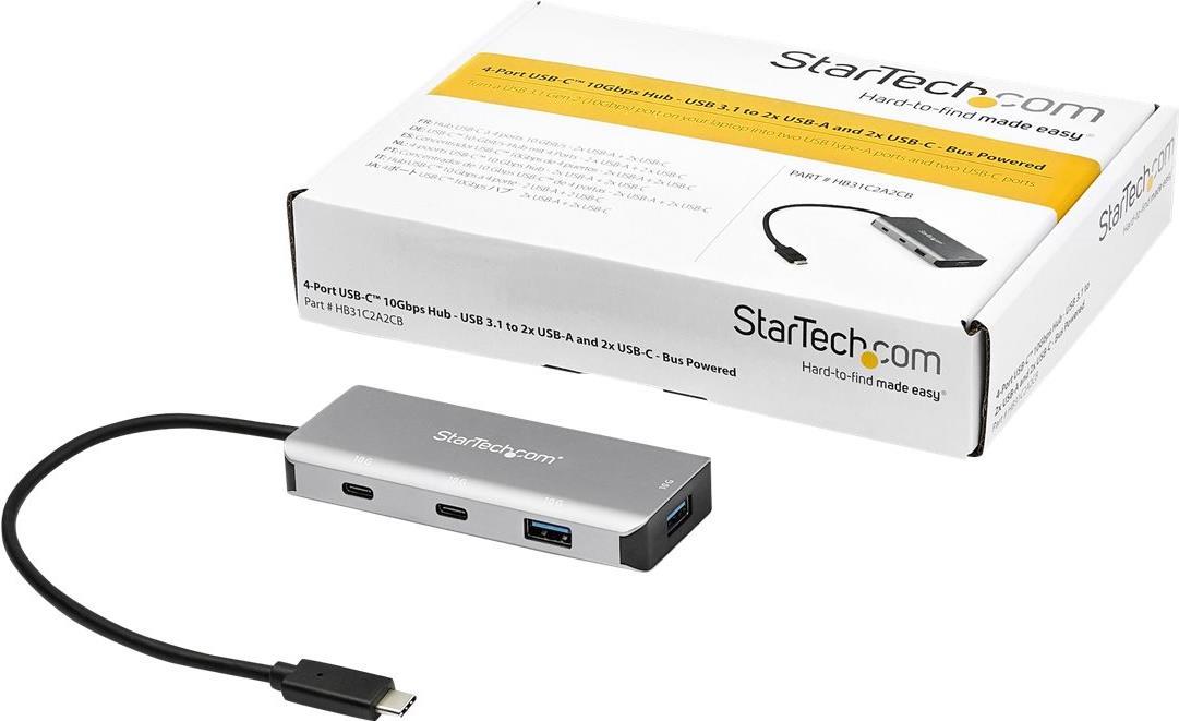 | Produktbeschreibung | StarTech.com 4-Port USB-C Hub (10Gbps) with 2x USB-A & 2x USB-C - 9.8" Extended Attached Host Cable (HB31C2A2CB) - Hub - 4 Anschlüsse |