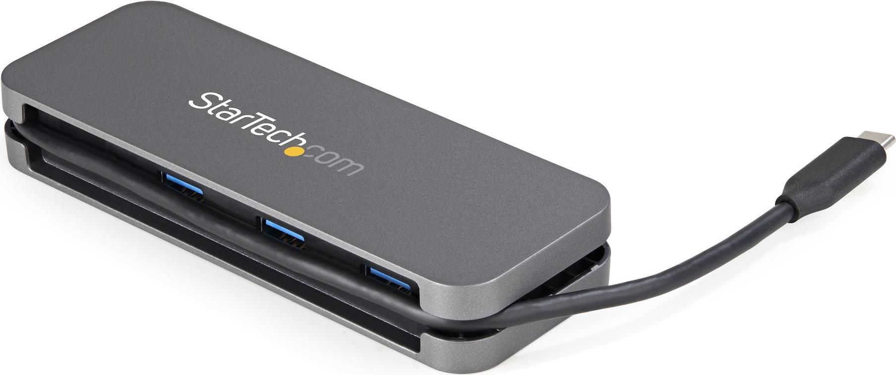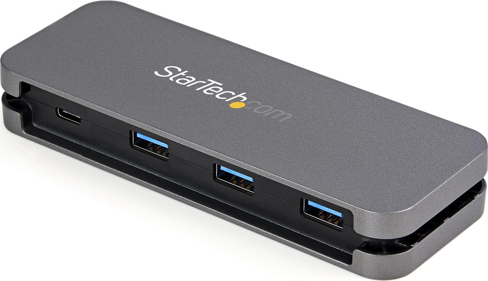 Mit diesem USB-C Hub mit 4 Anschlüssen können Sie vier SuperSpeed USB 3.2 Gen 1 (5 Gbit/s) Peripheriegeräte an Ihren USB-C Laptop oder Computer anschließen. Dies ist eine ideale Lösung, um einem Gerät mit begrenzten USB-Anschlüssen weitere Anschlüsse hinzuzufügen. Er verfügt über einen Kabelmanager zum Wickeln, dadurch können Sie das integrierte Kabel einfach verstauen und somit mobil bleiben.