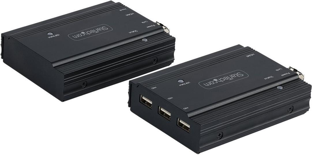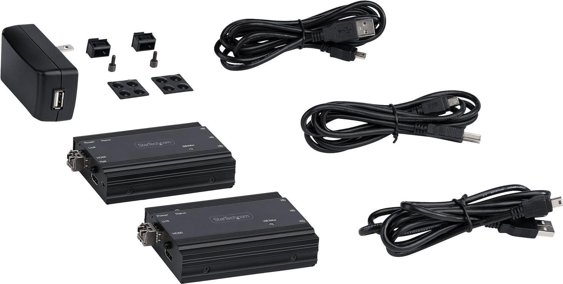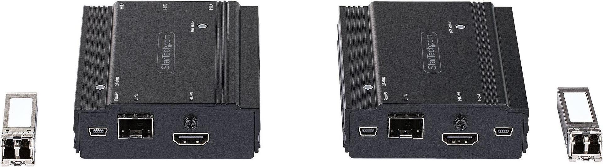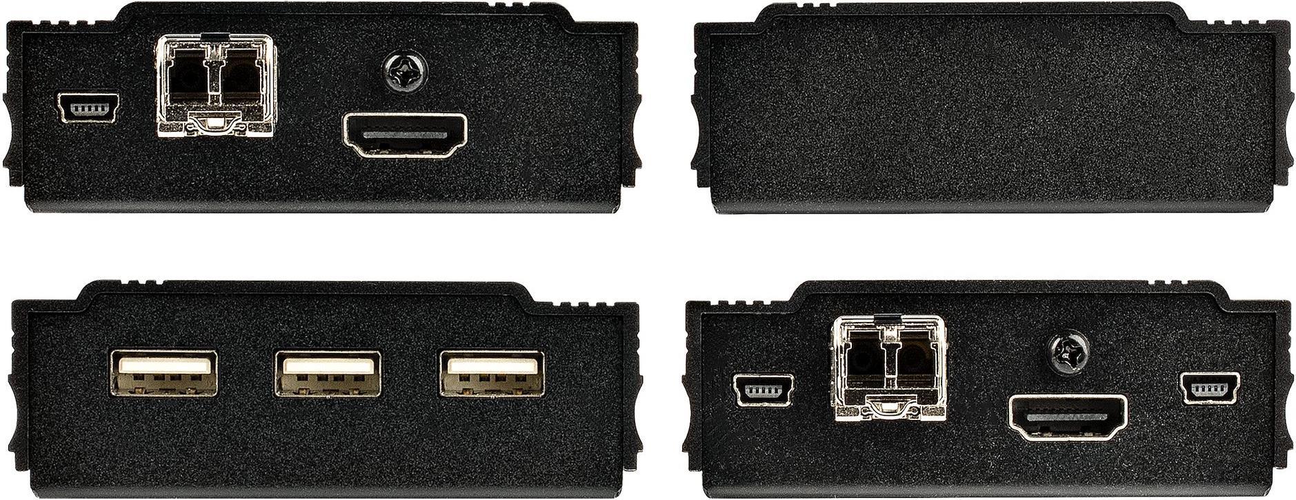 Mit diesem HDMI-KVM Extender-Kit können Sie per Tastatur, Maus und Monitor jeden Computer über eine Point-to-Point-Glasfaserverbindung fernsteuern. In Kombination mit einem KVM-Switch kann der KVM-Konsolen-Extender von mehreren Computern verwendet werden. Der Extender verfügt über drei USB-HID Anschlüsse, über die Sie HID-Geräte wie Tastatur und Maus anschließen können.