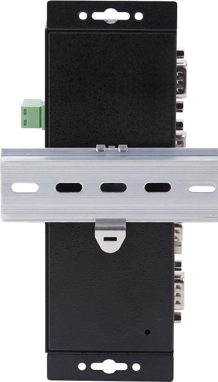 Zwei Stromversorgungsoptionen, eine Gleichstrombuchse und eine Klemmleiste, bieten Flexibilität und Komfort bei der Installation. Der Konverter ist in einem Vollmetallgehäuse untergebracht, das auch in rauen Umgebungen beständig ist. Der DB9 über IP-Konverter wird mit allen erforderlichen Befestigungselementen für Wand und DIN-Schiene geliefert. Mehrere Montagelöcher entlang des Gehäuses ermöglichen die Installation in der für die jeweilige Anwendung am besten geeigneten Ausrichtung. Abmessungen von 7x2.3x0.9in (178x59.4x23mm).