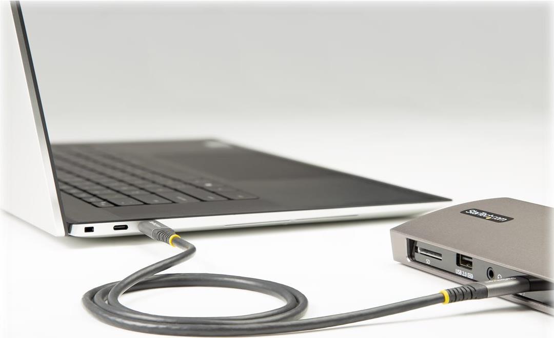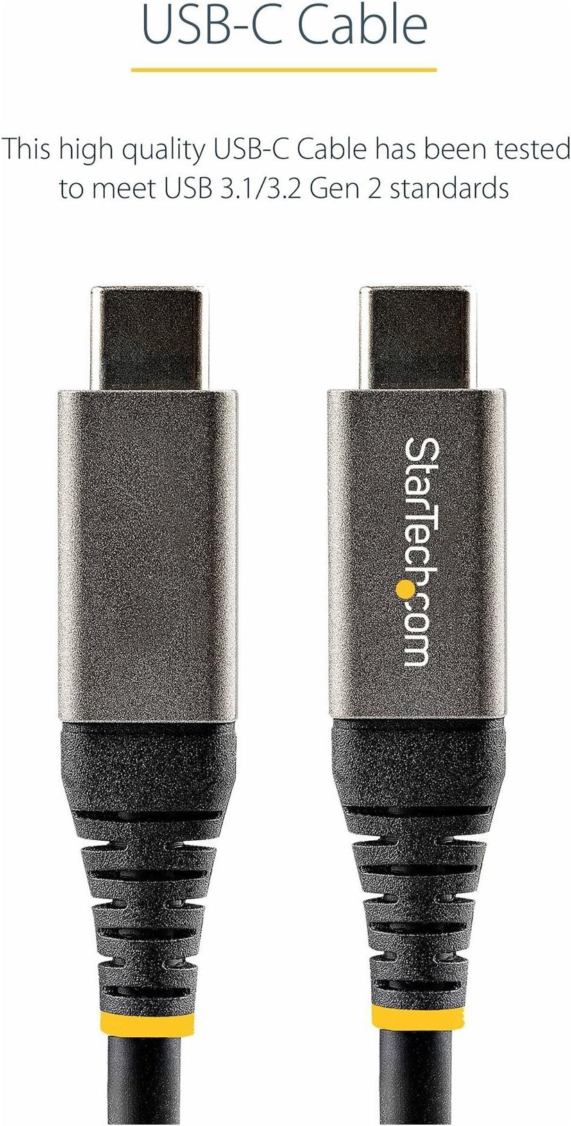 50cm USB-C Kabel 10Gbit/s - USB-IF zertifiziertes USB-C Kabel - USB 3.2 Gen 2 Typ-C Kabel - 100W (5A) Power Delivery, DP Alt Mode - USB-C Kabel - Laden&Synchronisieren (USB31CCV50CM).Produkttext[/head]USB-C Kabel 10Gbit/s | USB-IF Zertifiziert |100W (5A) Power Delivery | DP Alt ModeMit diesem USB-C™ Kabel USB 3.2/3.1 Gen 2 mit 10 Gbit/s schließen Sie Ihre USB-Typ-C™ Geräte an, um sie zu laden, zu synchronisieren und mit Strom zu versorgen.Das Kabel ist auch mit Thunderbolt™ 3 Anschlüssen kompatibel. Dies bedeutet, Sie können Ihre mobilen USB-C Geräte mithilfe Ihres Thunderbolt 3 Laptops laden und synchronisieren.Versorgen Sie Ihre USB-C Geräte mit StromMit bis zu 5 A (100 W) Stromversorgung können Sie einen USB-C Laptop wie Ihr Apple MacBook oder Microsoft Surface Book mit Strom versorgen. Schließen Sie das Kabel einfach an Ihr USB-C Laptop und ein USB-C Wandladegerät an.Verwenden Sie dieses USB Type-C Kabel zur Stromversorgung Ihrer USB-C-Festplatte über den USB-C-Port Ihres Laptops.Dieses Kabel mit einer Sonderlänge von 50 Zentimetern eignet sich bestens, um Ihre mobilen USB Typ C Geräte über Verbindungen mit kurzer Distanz zu Ihrem Laptop zu laden und zu synchronisieren.Sie können das Kabel auch zum Laden Ihrer USB-C Geräte über ein Wandladegerät, ein KFZ-Ladegerät oder eine Power Bank des Typs USB-C verwenden. Es ist das ideale Kabel, wenn Sie Pendler sind und es im Auto verwenden möchten oder wenn Sie für eine bessere Übersicht bei der Synchronisierung mit Ihrem Laptop sorgen möchten.Stellen Sie 8K-Video mit DisplayPort 1.4 Alt Modus bereitDas Kabel unterstützt Video mit 8K 30 Hz Video mit DisplayPort 1.4 und ist abwärtskompatibel für den Anschluss Ihrer Dockingstation oder Ihres Laptops an einen Monitor, der eine Auflösung von 4K oder 1080p unterstützt.Bewahren Sie es als Ersatzkabel für Reisen auf.Tauschen Sie das USB-C Ladekabel aus, das mit Ihrem Gerät geliefert wurde, oder nehmen Sie eines als Ersatzkabel auf Reisen mit. So sind alle Ihre Geräte bei Bedarf stets einsatzbereit, während Sie unterwegs sind.Das USB31CCV50CM fällt unter die 2-Jahres-Garantie von StarTech.com zur Gewährleistung der Zuverlässigkeit.The StarTech.com Advantage[head]Hauptmerkmale