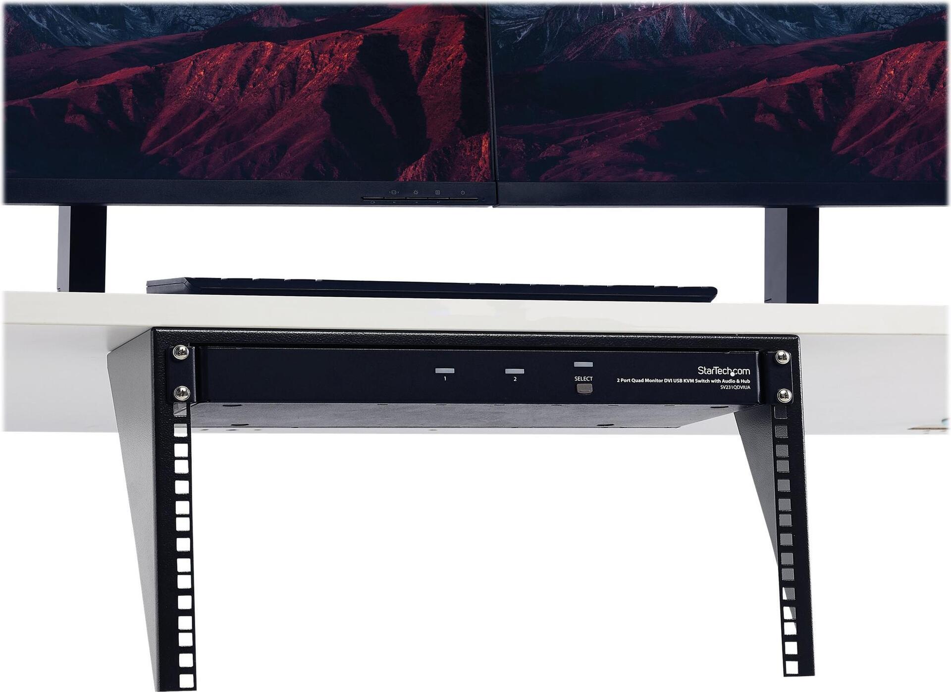 Diese Wandhalterung bietet Ihnen 6 Rackeinheiten für die vertikale Aufbewahrung Ihrer Geräte an der Wand. Dieses für Wandmontage geeignete EIA-310-D-konforme Rack bietet 6 Rackeinheiten für den Einbau beliebiger 19-Zoll-Einbaugeräte, z. B. Ihrer Steckdosenleisten, Telekommunikations-, Netzwerk- und AV-Geräte.