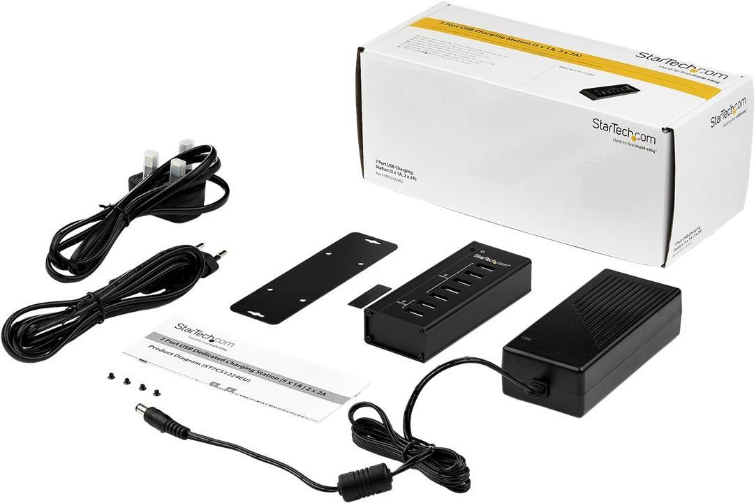 | Produktbeschreibung | StarTech.com ST7C51224EU USB Ladestation (7 Ports, 5x 1A Ports & 2x 2A Ports, Standalone, USB Ladestreifen fur mehrere Gerate) Ladesteifen - + AC-Netzteil |