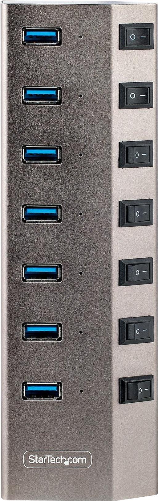 | Produktbeschreibung | StarTech.com 7-Port Self-Powered USB-C Hub with Individual On/Off Switches, USB 3.0 5Gbps Expansion Hub w/Power Supply, Desktop/Laptop USB-C to USB-A Hub, 7x BC 1.2 (1.5A), USB Type C Hub - USB-C/A Host Cables (5G7AIBS-USB-HUB-EU) - Hub - 7 Anschlüsse |