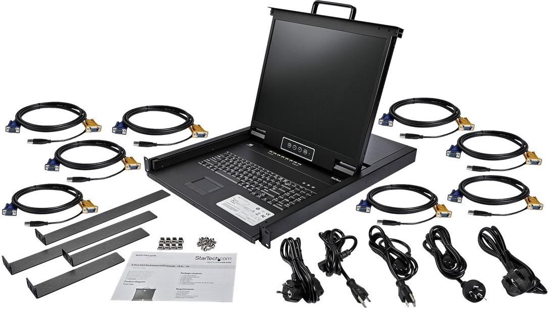 StarTech.com 8-Port Rackmount KVM Console for Server Rack - 19 in. - 1U - KVM-Konsole mit KVM-Switch - 8 Anschlüsse - PS/2, USB - 48.3 cm (19") - Rack - einbaufähig - 1280 x 1024 - 250 cd/m² - 1000:1 - VGA - Schwarz - 1U (RKCONS1908K)