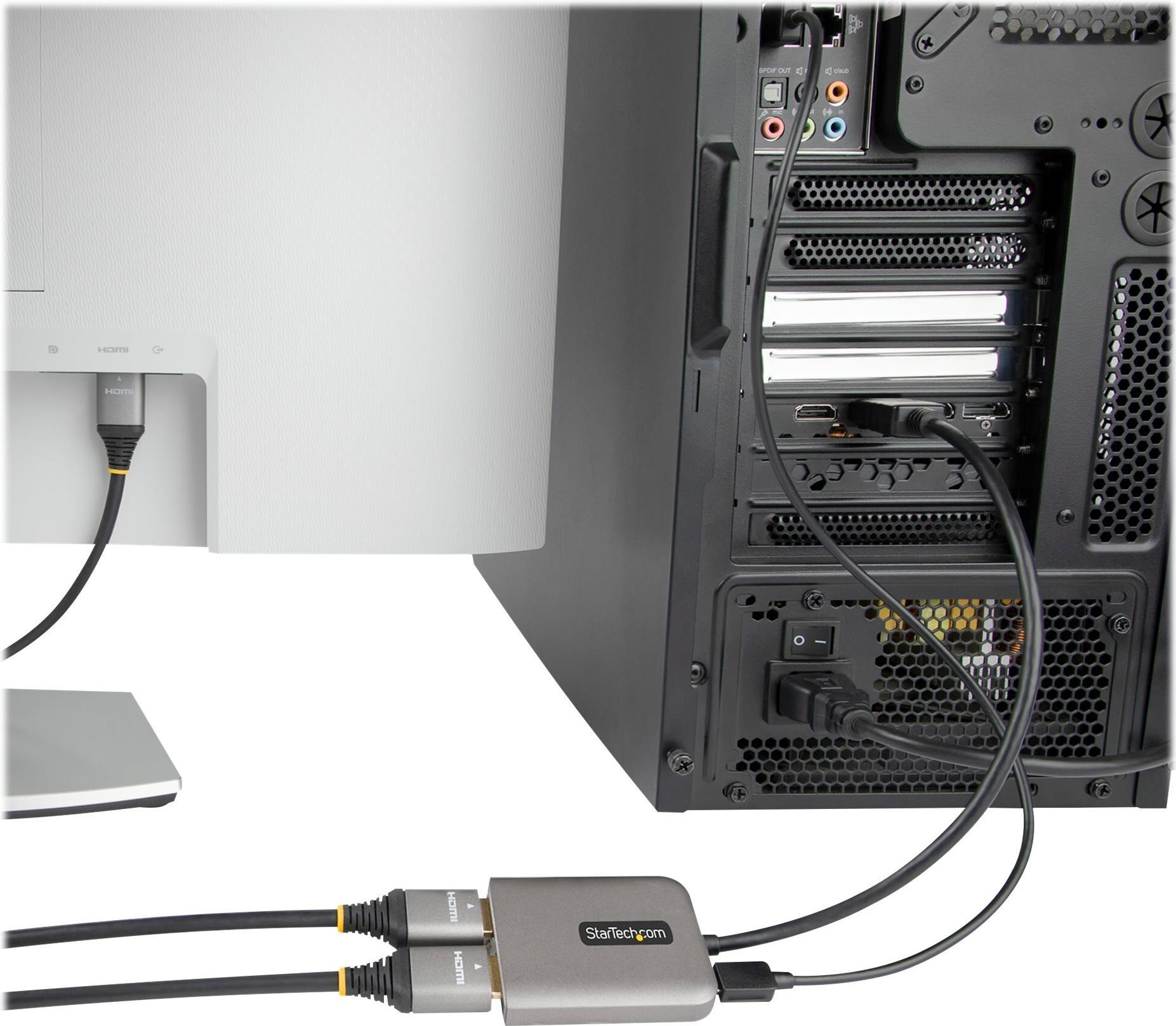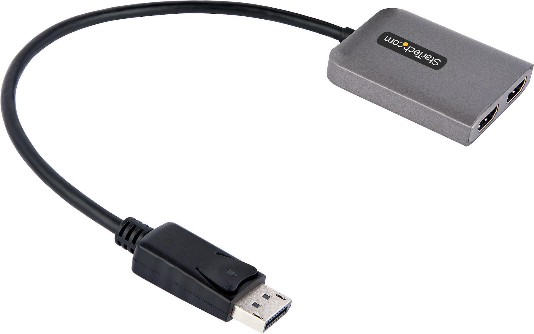 Dieser DisplayPort auf HDMI MST Hub steuert zwei 4K 60Hz HDMI Monitore von einem DisplayPort Windows Gerät.Produkttext[/head]2 x 4K 60Hz | Multi-Monitor Video Splitter | Windows® | DSC | HDRDieser DisplayPort auf HDMI MST Hub steuert zwei 4K 60Hz HDMI Monitore von einem DisplayPort Windows Gerät.Einfaches MultitaskingDieser DisplayPort auf HDMI Videosplitter ermöglicht den Anschluss von bis zu zwei zusätzlichen Bildschirmen im erweiterten oder gespiegelten Modus. Durch den Anschluss von zwei unabhängigen 4K 60Hz Bildschirmen wird eine Workstation mit hoher Leistungsfähigkeit für die Benutzer in Ihrem Unternehmen geschaffen, die ein einfacheres Multitasking für eine höhere Produktivität ermöglicht.Host VerbindungAusgang 1 AuflösungAusgang 2 AuflösungDisplayPort 1.4 mit DSC4K 60Hz4K 60HzDisplayPort 1.44K 60Hz4K 30HzDisplayPort 1.24K 30Hz4K 30Hz4K bei 60Hz und HDRNative Unterstützung für MST auf jedem Windows Gerät ermöglicht eine einfache Einrichtung. Dieser MST Hub trennt die einzelne Wiedergabe in zwei unabhängige Signale, eines für jeden HDMI fähigen Bildschirm. Unterstützung für High Dynamic Range (HDR) bietet höheren Kontrast, mehr Helligkeit, mehr Farben und mehr Leuchtkraft.Problemlose InstallationMST bietet ein einfaches Setup, da es nativ auf jedem Windows Gerät arbeitet. Plug-and-Play Installation, keine Treiber oder Software erforderlich. Ein 30 cm (12" ) langes Kabel bietet Optionen für flexible konfigurationen und reduziert die Belastung von Ports und Steckern. Außerdem wird dieser Dual Monitor Splitter über USB betrieben (USB Kabel enthalten).MST14DP122HD wird von StarTech.com für 3 Jahre gesichert, einschließlich kostenlosem, m, mehrsprachigem technischem Support (24/5)The StarTech.com Advantage[head]Hauptmerkmale