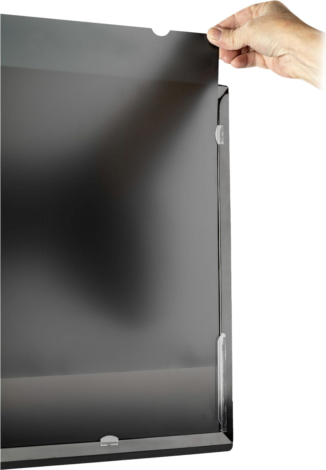 Die Displayschutzfolie lässt sich ganz einfach am Monitor anbringen und wieder entfernen. Befestigen Sie einfach den 23,8 Zoll-Bildschirmsichtschutz mit den Befestigungsstreifen oder den Gleitlaschen am Bildschirm mit einem Seitenverhältnis von 16:9. Dieser Bildschirmsichtschutz ist auch wendbar. Die matte Seite sorgt für eine Reduzierung von Blendeffekten und die glänzende Seite der Sichtschutzfolie für große Klarheit der Darstellung.