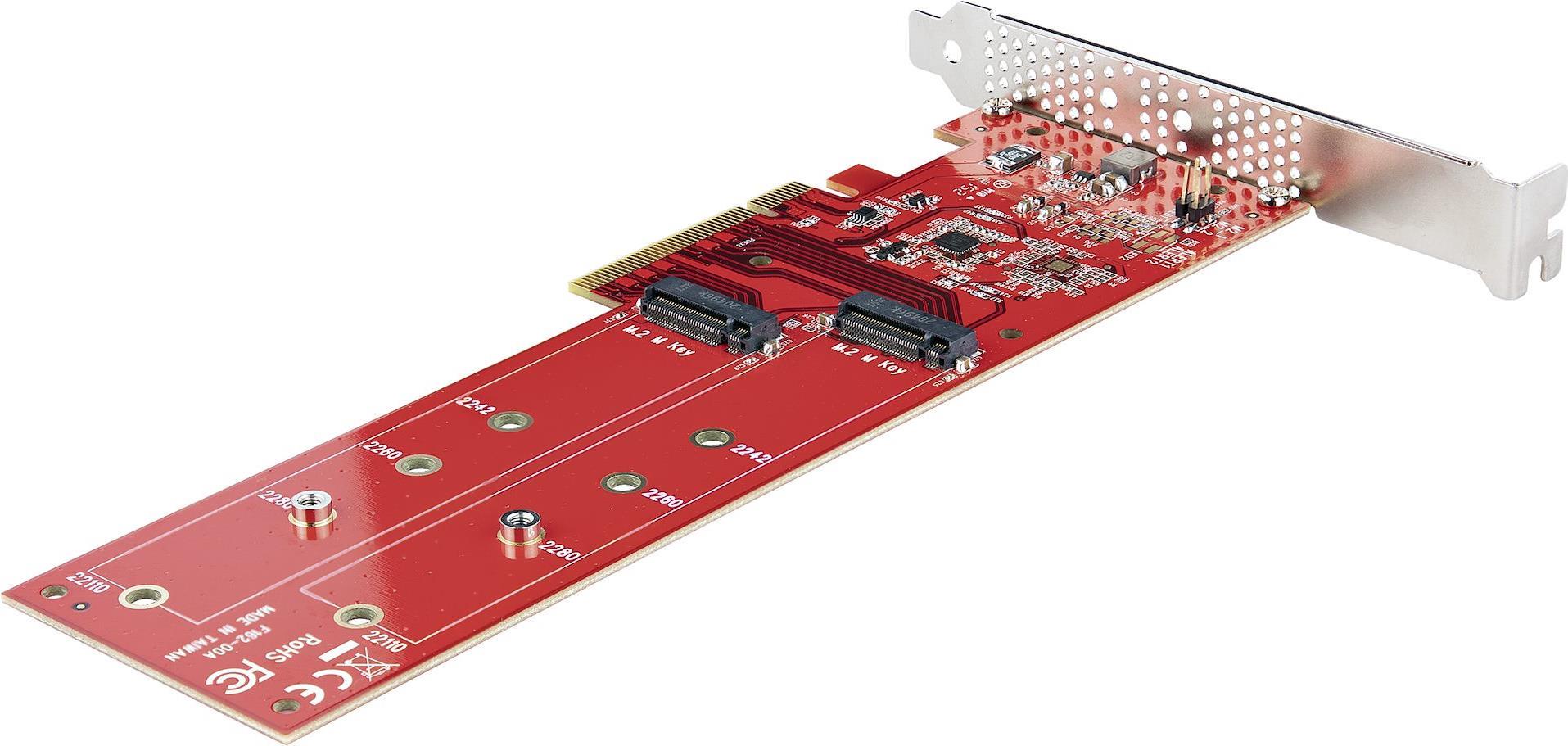 StarTech.com Dual M 2 PCIe AdapterKarte, PCIe x8 - x16 auf Dual AHCI oder NVMe M.2 SSDs, PCI Express 4,0, 7,8GB/s pro Laufwerk, Bifurkation Erforderlich - Windows/Linux Kompatibel (DUAL-M2-PCIE-CARD-B) - Schnittstellenadapter - M.2 - Erweiterungsschlitz auf 2 x M.2 - M.2 Card - Low-Profile - RAID 0, 1, JBOD - PCIe 4,0 x16/x8 - Rot (DUAL-M2-PCIE-CARD-B)