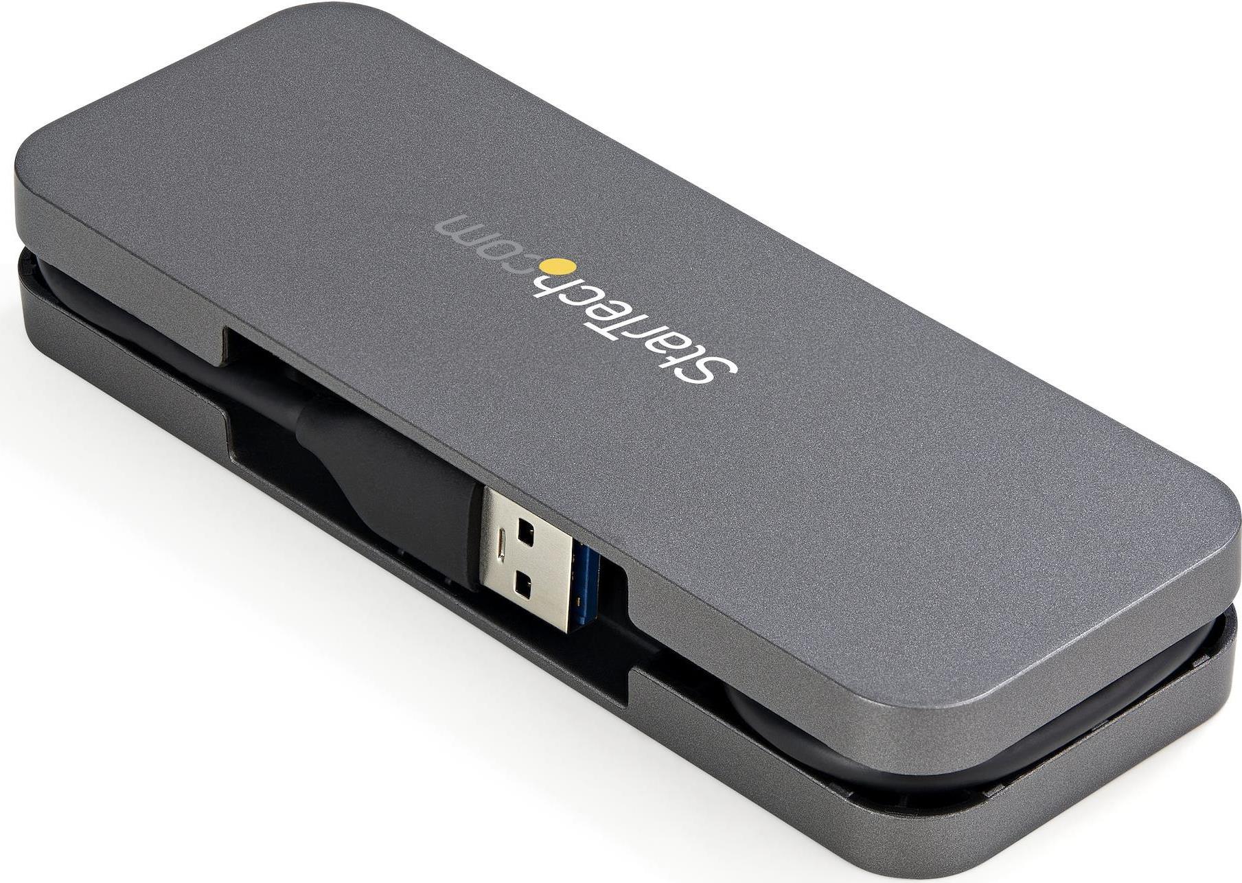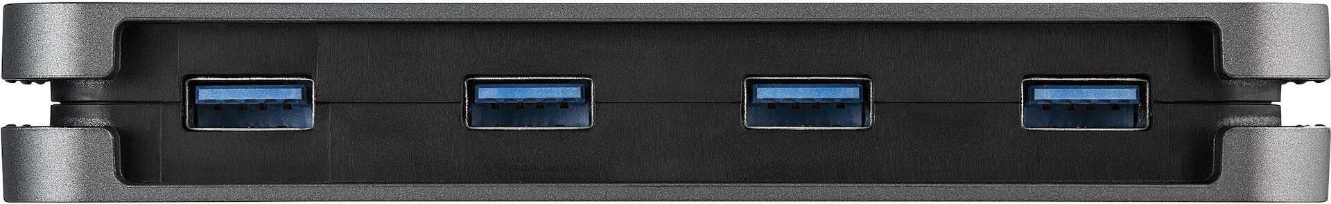 Mit diesem USB Hub mit 4 Anschlüssen können Sie vier SuperSpeed USB 3.2 Gen 1 (5 Gbit/s) Peripheriegeräte an Ihren USB-A Laptop oder Computer anschließen. Dies ist eine ideale Lösung, um einem Gerät mit begrenzten USB-Anschlüssen weitere hinzuzufügen. Er verfügt über einen Kabelmanager zum Wickeln, dadurch können Sie das integrierte Kabel einfach verstauen und somit mobil bleiben. Hinweis: USB 3.2 Gen 1 (5 Gbit/s) wird auch als USB 3.1 Gen 1 (5 Gbit/s) und USB 3.0 (5 Gbit/s) bezeichnet. Erweiterung der Konnektivität Ihres Computers Mit diesem USB Hub können Sie vier USB-A Geräte an einen einzigen USB-A Anschluss Ihres Hostgeräts anschließen. Der USB Typ-A Hub teilt sich bis zu 4,5W (5 V/900 mA) Strom zwischen angeschlossenen Geräten und ist damit eine ideale Lösung für den Anschluss von SSD/USB-Sticks, Datenspeichern, Tastaturen, Mäusen, Webcams und USB-Headsets. Der USB Hub ist abwärtskompatibel mit USB 2.0 (480 Mbit/s). Leicht tragbar und elegant Mit einem robusten, leichten Kunststoffgehäuse und einem eleganten Kabelmanagementsystem zum Wickeln ist dieser USB Hub der perfekte Reisebegleiter für Ihren Laptop. Dank seiner geringen Stellfläche kann er problemlos in Ihrer Laptoptasche verstaut werden und der Kabelmanager zum Wickeln verhindert Kabelgewirr und sorgt so für eine einfache Zugänglichkeit. Der USB Hub ist Bus-betrieben, sodass kein sperriges externes Netzteil nötig ist. Umfassende Gerätekompatibilität Der USB Hub ist betriebssystemunabhängig und unterstützt eine Vielzahl von Plattformen, darunter Windows, macOS, Linux, iPadOS, Chrome OS und Android. Das integrierte Hostkabel ist 28 cm lang und kann somit problemlos in jede Workstation integriert werden und Ihr Hostgerät auch dann erreichen, wenn es sich auf einer Laptop-Erhöhung oder einem Ständer befindet. Der USB-A Host-Anschluss funktioniert mit jedem USB-Typ-A Laptop oder 2-in-1, wie Surface Pro 7, Surface Book, MacBook, XPS oder X1 Carbon. HB30AM4AB wird von StarTech.com mit einer 2-Jahres-Garantie und einem kostenlosen mehrsprachigen technischen Support aus Nordamerika rund um die Uhr an Werktagen während der gesamten Produktlebensdauer angeboten. StarTech.com ist seit über 30 Jahren die erste Wahl für IT-Experten.