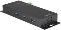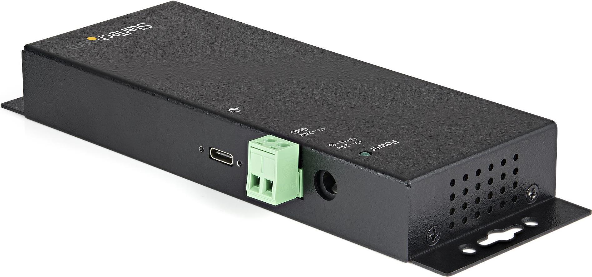 Mit diesem industriellen USB-Hub mit 4 Anschlüssen können Sie vier SuperSpeed USB 3.2 Gen 2 (10 Gbit/s) Peripheriegeräte an Ihren USB-A oder USB-C Computer anschließen. Der Hub verfügt über drei USB-A und einen USB-C Peripherieanschluss, jeweils mit einem Stecker mit Feststellschraube und einem industriellen Metallgehäuse, das ideal für kommerzielle Umgebungen ist.