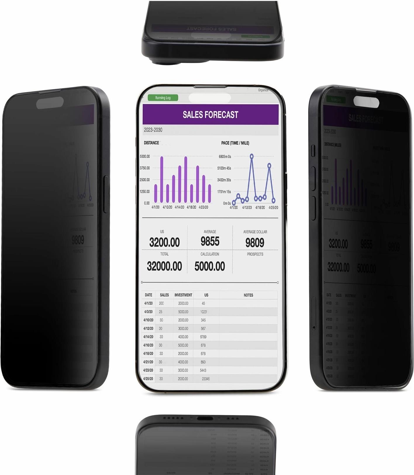 Der Sichtschutzfilter gewährleistet optimalen Datenschutz im Hoch- oder Querformat, wenn das Gerät aus einem Winkel von mehr als 30° von der Mitte aus betrachtet wird, und deckt einen sichtbaren Bereich von insgesamt 60° ab. Er unterstützt Touchscreen-Eingaben und Gesten, sodass das interaktive Erlebnis eines iPhones erhalten bleibt, während die Vertraulichkeit der Bildschirminhalte gewahrt wird.