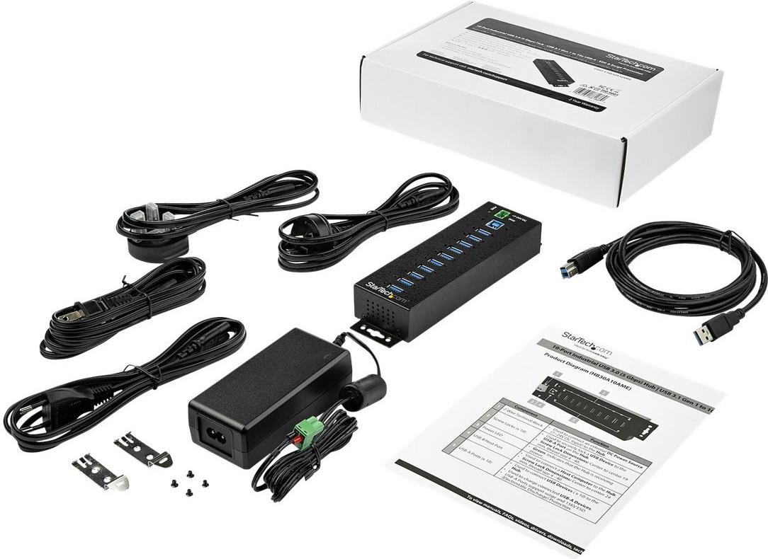 | Produktbeschreibung | StarTech.com HB30A10AME USB 3.0 Hub (10-Port, Din-Rail, Industrielle Anwendung, externes Netzteil, Uberspannungsschutz, ESD, 350 W, 15 kV) - Hub - 10 Anschlüsse |