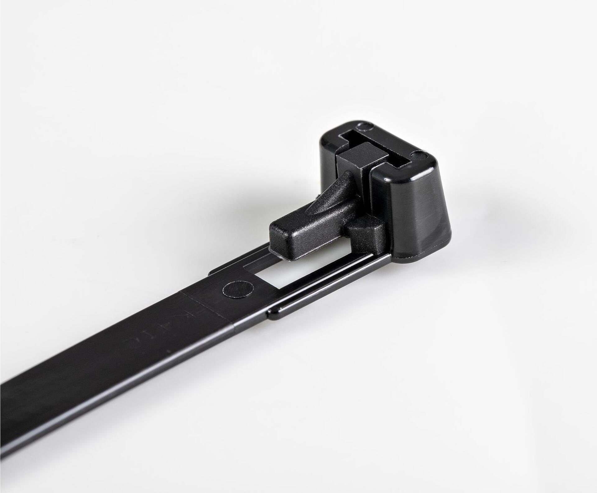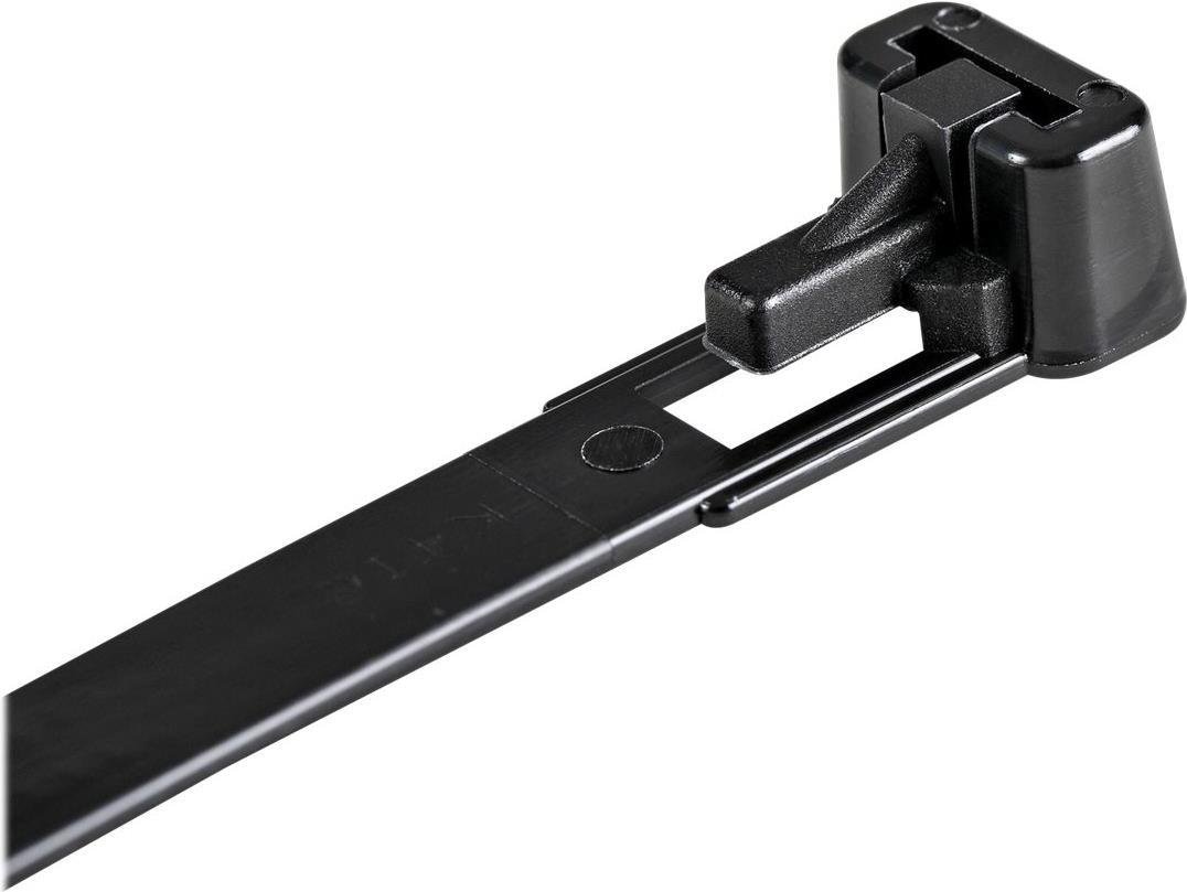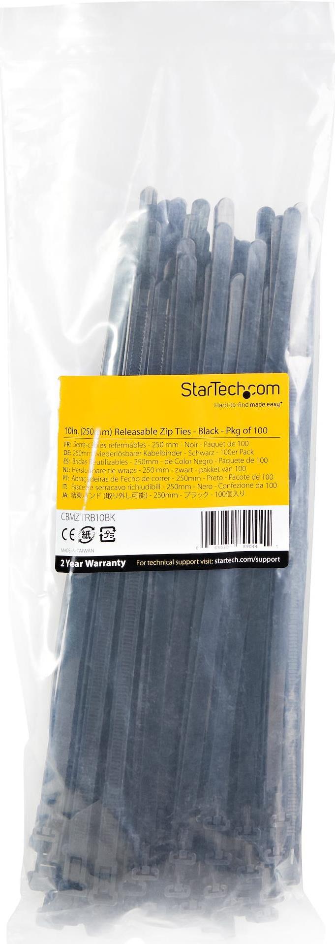 StarTech.com 25,40cm (10")(25cm) Reusable Cable Ties, 1/4"(7mm) wide, 2-1/2"(65mm) Bundle Dia. 50lb(22kg) Tensile Strength, Releasable Nylon Ties, Indoor/Outdoor, 94V-2/UL Listed, 100 Pack, Black - Nylon 66 Plastic - TAA (CBMZTRB10BK) - Kabelbinder |