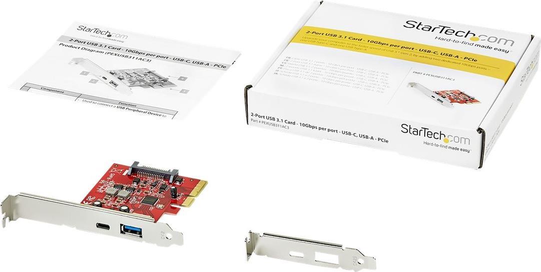 | Produktbeschreibung | StarTech.com 2-Port 10Gbps USB-A & USB-C PCIe Card Adapter - USB 3.1 Gen 2 PCI Express Expansion Add-On Card - Windows, macOS, Linux - USB-Adapter - PCIe 3.0 x4 - USB-C 3.1 x 1 + USB 3.1 Gen 2 x 1 |