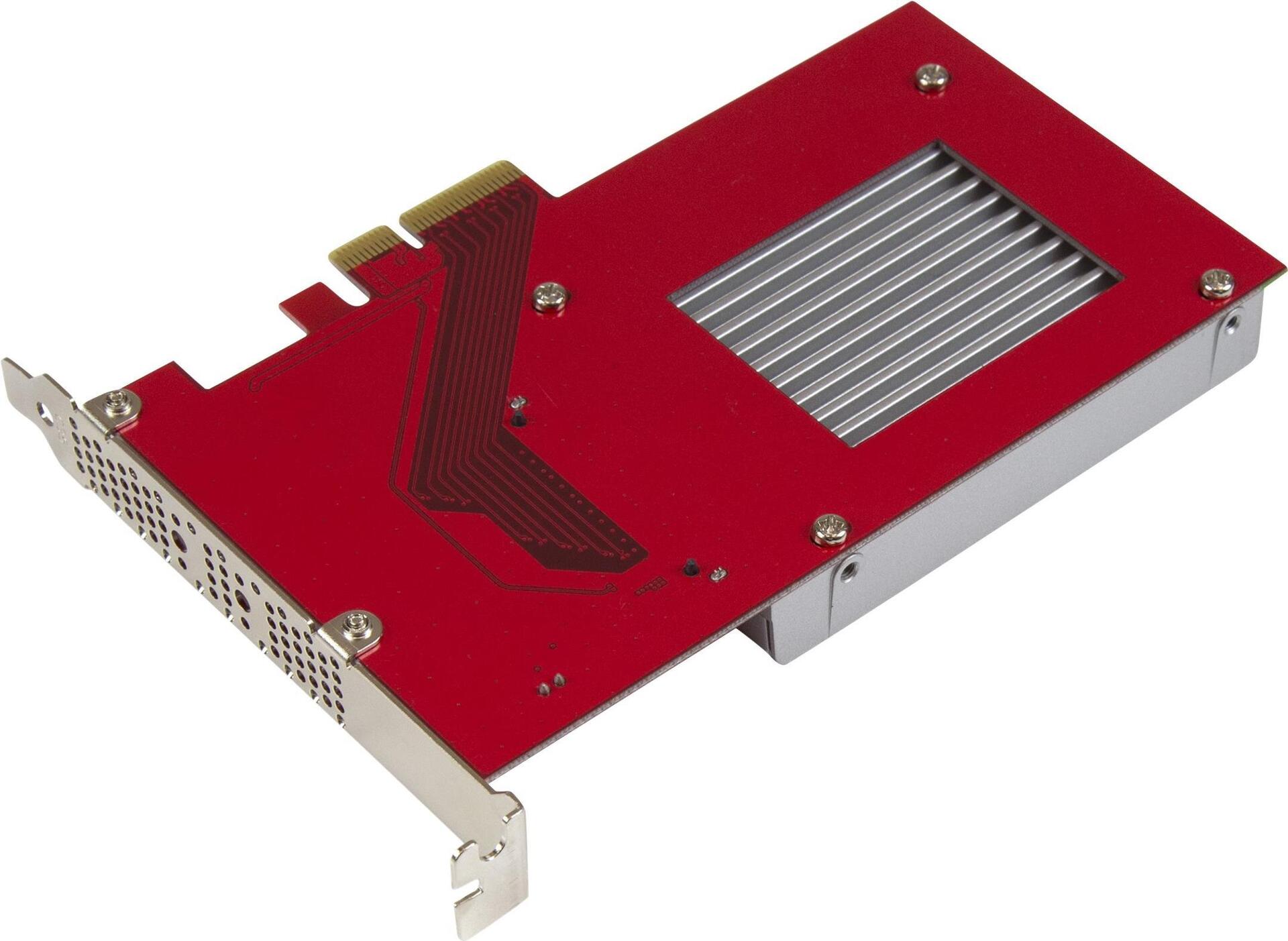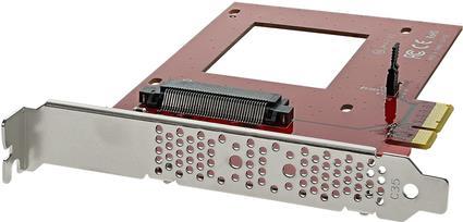 Fügen Sie Ihrem Computer eine NVMe-U.2-SSD für ultraschnellen Datenzugriff hinzu. Mit diesem U.2-auf-PCIe-Adapter können Sie eine Hochgeschwindigkeits-U.2-2.5 Zoll-NVMe-SSD (PCIe mit 4 Lanes), beispielsweise aus der Intel 750 Serie, Ihrem PC an einem verfügbaren x4-PCI-Express-Erweiterungssteckplatz hinzufügen. Sie können das PCIe-U.2-Laufwerk direkt am Adapter installieren und somit einfach und bequem die Systemleistung verbessern und den internen Speicher erweitern. Steigern Sie die Systemgeschwindigkeit und -leistung Durch die Erweiterungskarte können Sie die Vorteile der Leistung und der kompakten Größe von internen PCIe-U.2-Solid-State-Laufwerken vollständig nutzen. Der Adapter wird direkt an das Motherboard des Computers angeschlossen und unterstützt eine PCIe-basierte NVMe-U.2-SSD über ultraschnelles x4 PCIe. Ist das PCIe-basierte U.2-Laufwerk installiert, sorgt der Adapter für eine erhebliche Geschwindigkeitssteigerung Ihres Computers. Einfach zu installieren Die Erweiterungskarte ist ausgestattet mit einer Full-Profile-Halterung und erfordert kein Adapterkabel für die Installation, sodass Kabelgewirr reduziert und das System vereinfacht wird. Das Laufwerk ist direkt mit dem SFF-8639-Stecker am Adapter verbunden und der Adapter direkt mit dem Motherboard des Computers. Dieser Adapter ist kompatibel mit PCIe-3.0-Motherboards und abwärtskompatibel mit PCIe 2.0 und PCIe 1.0. Der PEX4SFF8639 wird von StarTech.com mit einer 2-Jahres-Garantie sowie lebenslangem kostenlosem technischem Support angeboten.