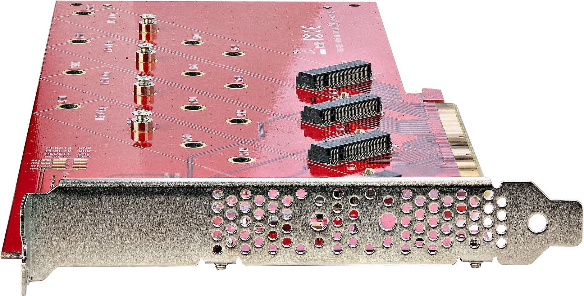 StarTech.com Quad M.2 PCIe Adapter Card, x16 Quad NVMe or AHCI M.2 SSD to PCI Express 4,0, Up to 7,8GBps/Drive, For 2242/2260/2280/22110mm PCIe M-Key M2 SSDs, Bifurcation Required - PC/Linux Compatible (QUAD-M2-PCIE-CARD-B) - Schnittstellenadapter - M.2 - Erweiterungsslot auf 4 x M.2 (Erweiterungsslot auf 4 x M.2) - M.2 Card - Low-Profile - RAID 0, 1, JBOD - PCIe 4,0 x16/x8 - Rot (QUAD-M2-PCIE-CARD-B)