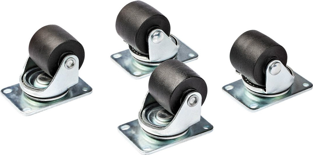 4 x Rollen, 18 M6-Schrauben, 18 M6-Käfigmuttern, 18 M6 Unterlegscheiben flach |