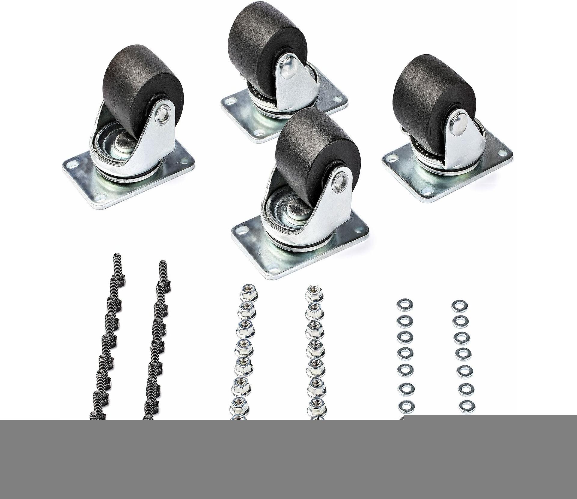 StarTech.com Heavy Duty Casters for Server Racks/Cabinets, Set of 4 Universal M6 5,10cm (2") Swivel Caster Kit, 45x75mm Pattern, Replacement Caster Wheels for 4 Post Racks, Steel/Plastic - 4-Pack Rolling Caster Kit (RKCASTER2) - Steckgehäuse-Rollensatz - Schwarz, Silber
