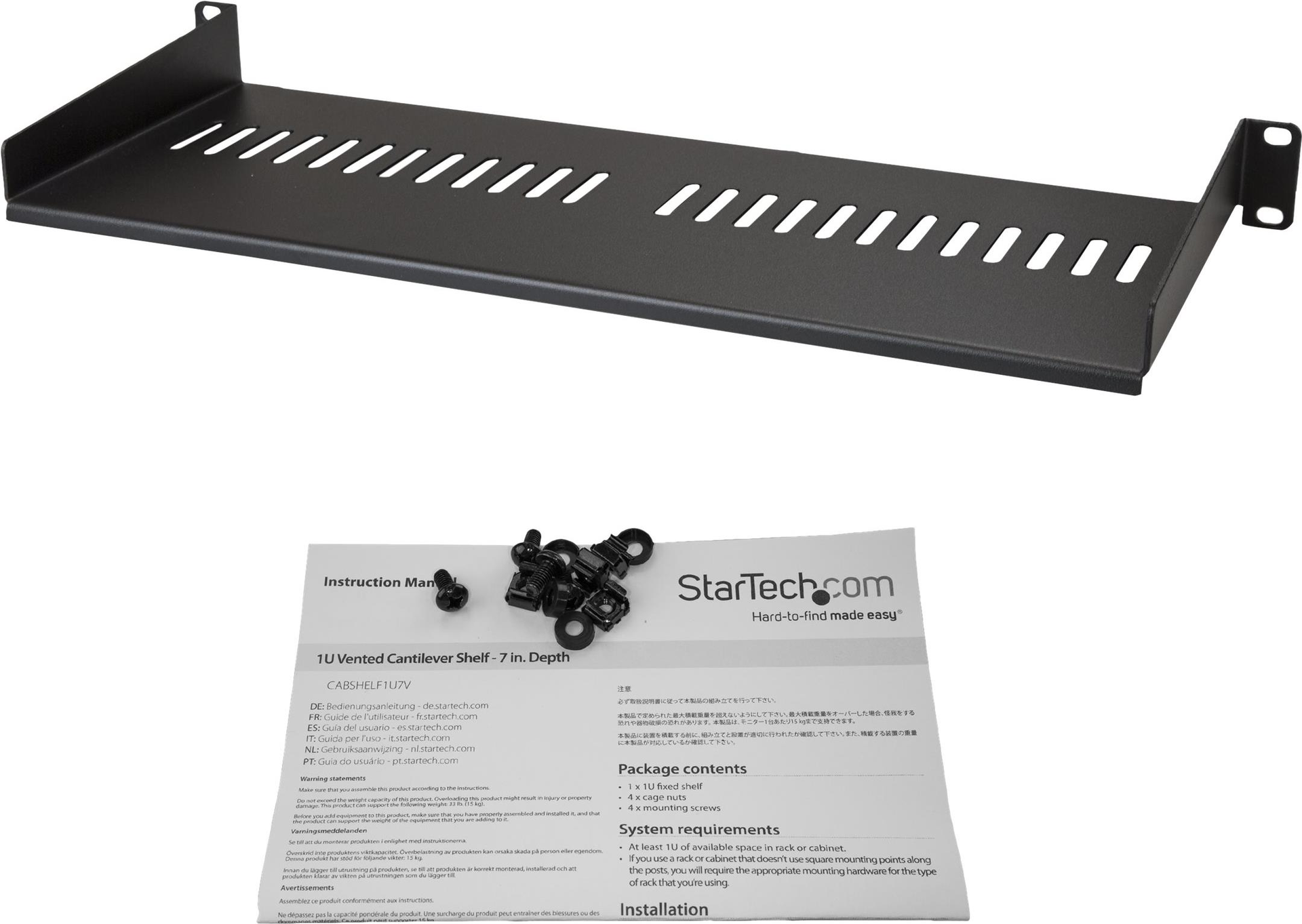 StarTech.com Vented 1U Rack Shelf - 7 in. Deep - Rack - Regal - 1U |