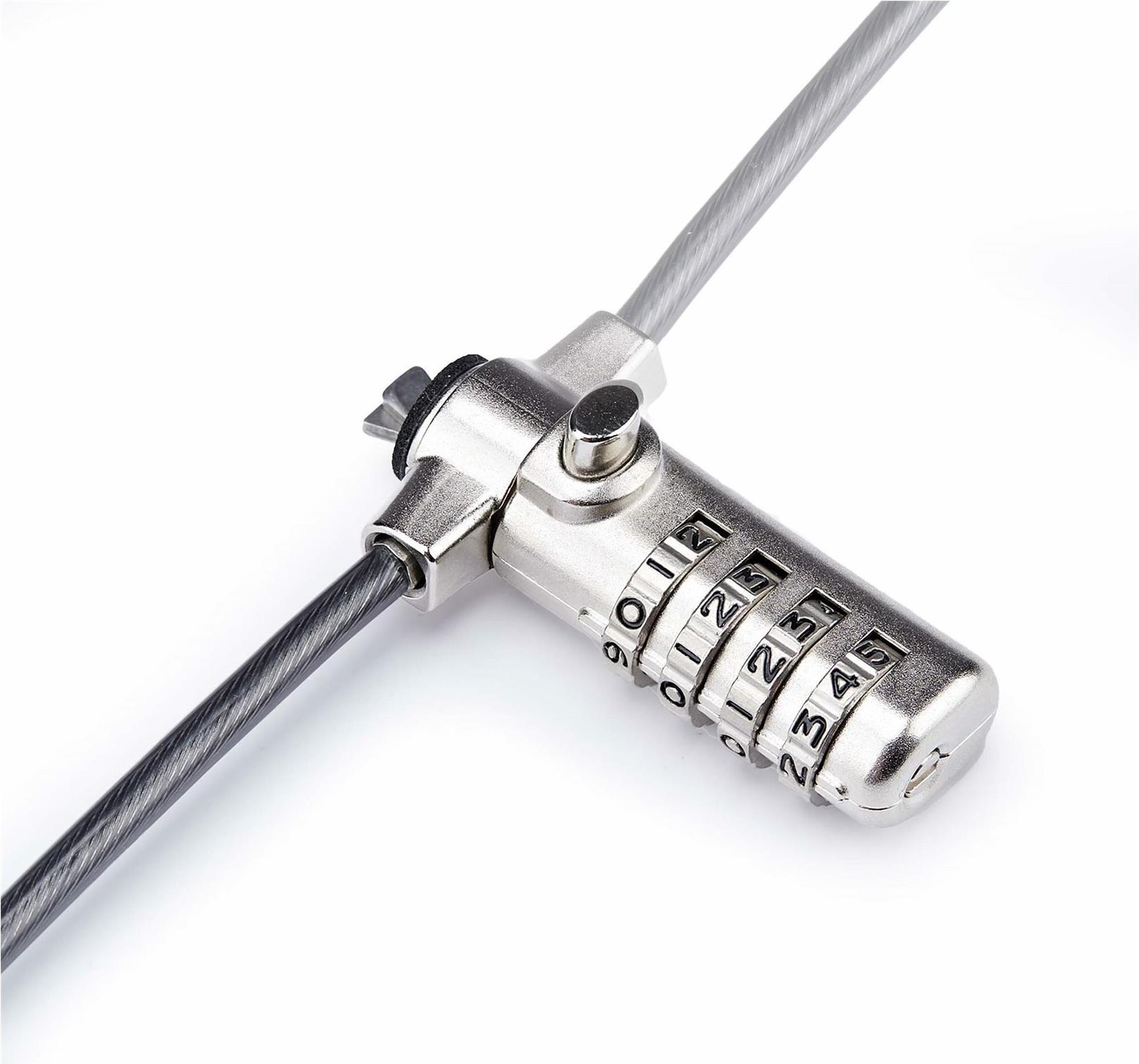Das schlüssellose Kabelschloss ermöglicht die Einstellung eines einzigartigen Kombinationscodes und unterstützt bis zu 10.000 Kombinationen für erhöhte Sicherheit. Das Schloss kann einer Zugkraft von bis zu 27kg standhalten und bietet so eine zusätzliche physische Sicherheit für den Computer oder andere Desktop-Peripheriegeräte.