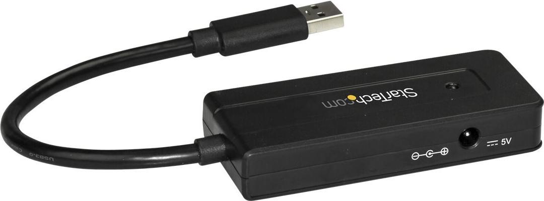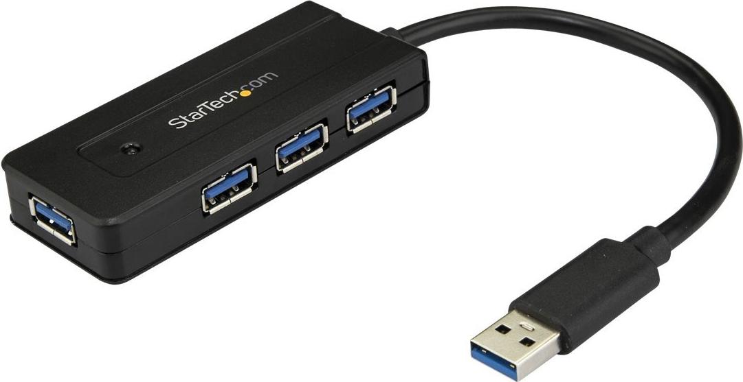 Dieser 4-Port-USB 3.0-Hub verwandelt einen einzelnen USB-Port Ihres Laptops in vier USB-A-Ports und ist dabei dank seines kompakten, USB-betriebenen Designs ein perfekter Reisebegleiter. Für Geräte, die zusätzlich Strom benötigen, ist auch ein externer Netzadapter im Lieferumfang des Hubs enthalten. Fügen Sie nahezu überall USB-Ports hinzu Mit seinem kompakten und leichten Design ist dieser USB-Hub auf Mobilität zugeschnitten. Verstauen Sie ihn auf Reisen einfach in Ihrer Laptop-Tasche und erweitern Sie damit Ihre Verbindungsmöglichkeiten beinahe überall dort, wo Sie sie benötigen. Er ist perfekt geeignet für den Anschluss gängiger USB-Geräte wie Maus, Tastatur oder Flash-Laufwerke genau dann, wenn Sie sie benötigen. Dieser vielseitige USB 3.0-Hub benötigt nur äußerst wenig Platz auf einem Schreibtisch, sodass Sie ihn nahezu überall installieren können. Er eignet sich zudem perfekt für den Einsatz in Hotdesking- oder BYOD (Bring Your Own Device)-Anwendungen. Stellen Sie bei Bedarf mehr Strom bereit Zur Unterstützung leistungshungriger USB-Geräte, wie z. B. größere externe Festplatten und Gehäuse, die mehr Strom benötigen, als die USB-Stromversorgung allein liefern kann, wird dieser USB-Hub mit eigener Stromversorgung mit einem externen Netzadapter geliefert. Mit dem Netzadapter können Sie auf einem der verfügbaren Ports auch Ihr Smartphone laden. Jeder USB-A-Port unterstützt die USB Akkuladespezifikation Rev. 1.2. Es ist ratsam, jeweils nur ein Gerät aufzuladen. Universelle Unterstützung für einfache Installation Dieser USB 3.0-Hub funktioniert mit zahlreichen Computern, da er weder zusätzliche Software noch Treiber benötigt. Er wird beim Anschluss an Ihren Laptop oder Ihren Desktop-Computer automatisch installiert und ist schnell einsatzbereit. Zudem funktioniert er mit einer Vielzahl von Betriebssystemen wie Windows , macOS, Linux und Chrome OS und bietet damit plattformübergreifende Kompatibilität. Der ST4300MINI wird von StarTech.com mit einer 2-Jahres-Garantie sowie lebenslangem kostenlosem technischem Support angeboten.