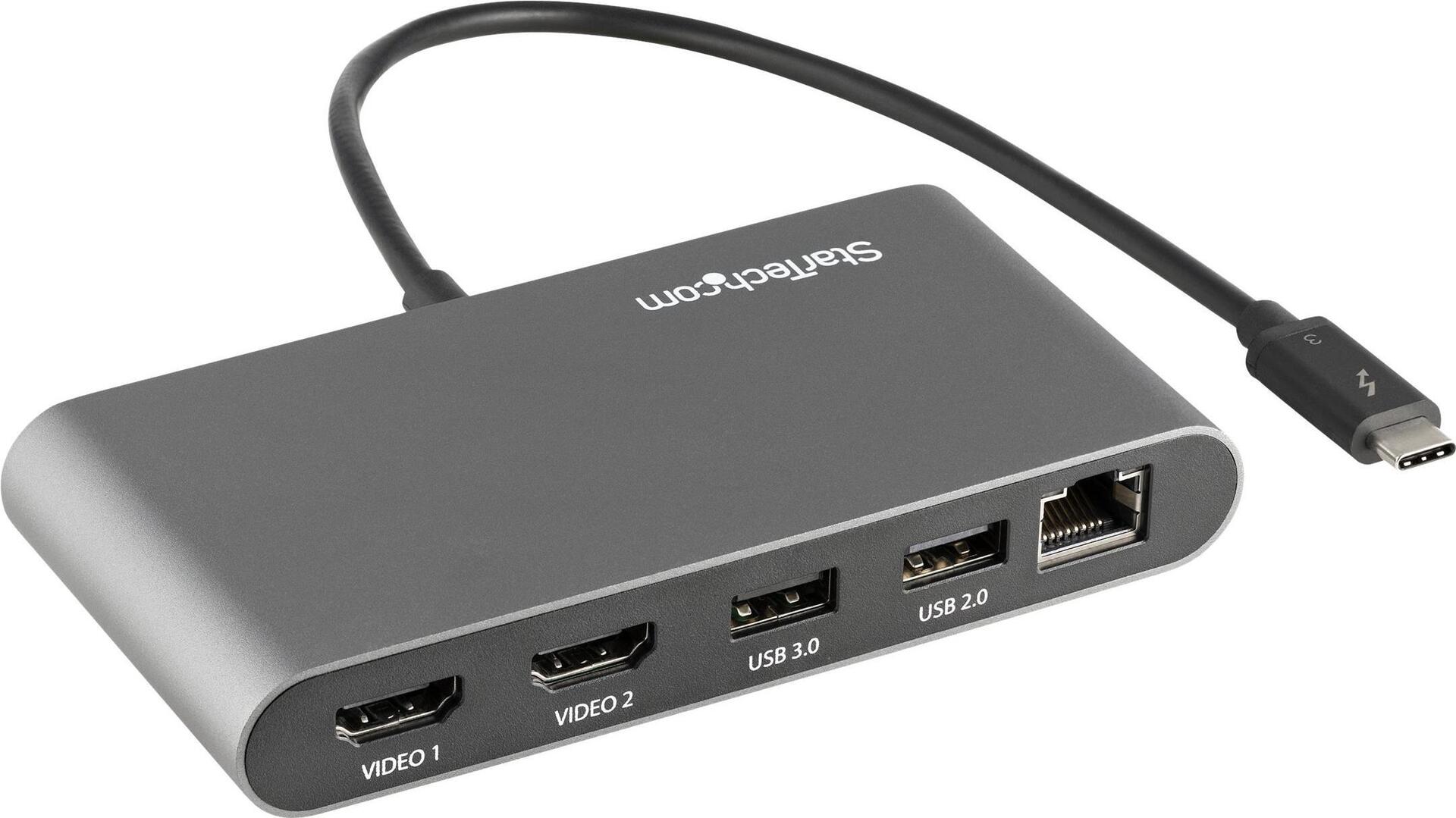 | Produktbeschreibung | StarTech.com Thunderbolt 3 Mini Dock - Tragbare TB3-Dockingstation mit dual Monitoren, HDMI 4K 60 Hz - GbE - Dockingstation - Thunderbolt 3 - 2 x HDMI - GigE |