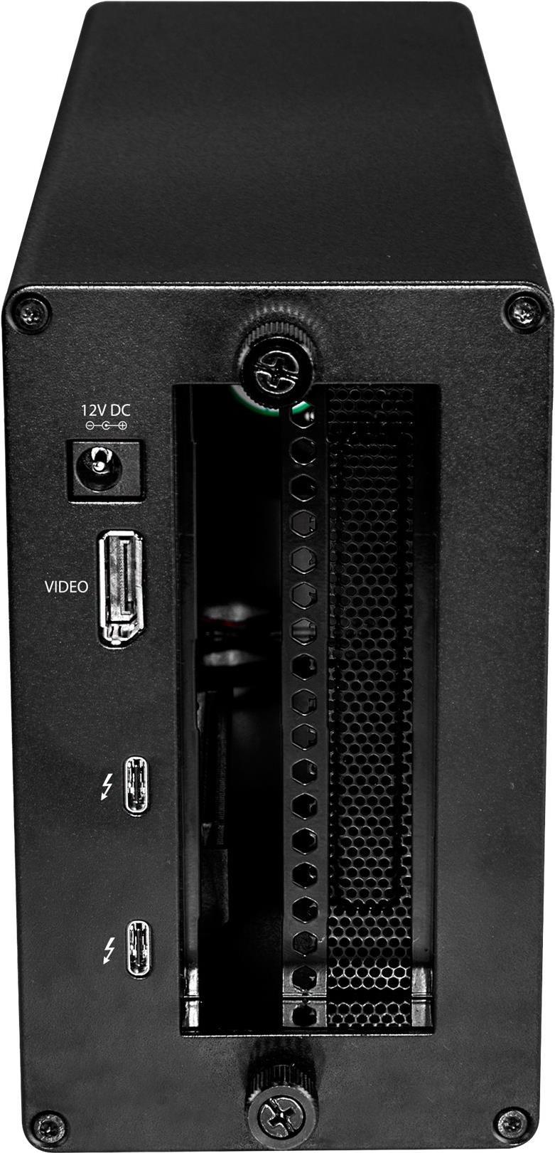 Mit diesem Thunderbolt 3-PCIe-Erweiterungsgehäuse können Sie über einen externen Thunderbolt 3-Anschluss eine PCI Express-Karte an Ihren Laptop oder Desktop-Computer anschließen. Das Gehäuse verfügt außerdem über einen DisplayPort-Videoausgang, sodass Sie einen zusätzlichen Monitor an Ihren Laptop anschließen können, und unterstützt Thunderbolt 3-Verkettung, sodass Sie Ihre Workstation noch weiter ausbauen können.