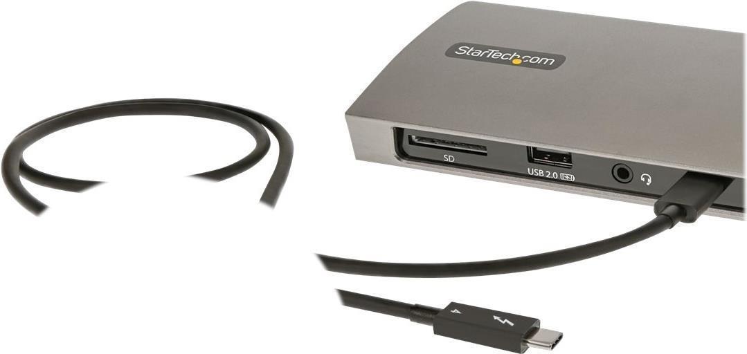 | Produktbeschreibung | StarTech.com Thunderbolt 4 Dock, 96W Power Delivery, Single 8K/Dual Monitor 4K 60Hz, 3xTB4/USB4 ports, 4xUSB-A, SD, GbE, Thunderbolt 4 Docking Station for Windows or TB3 MacBook, 0.8m - Dockingstation - Thunderbolt 4 - 3 x Thunderbolt - GigE |