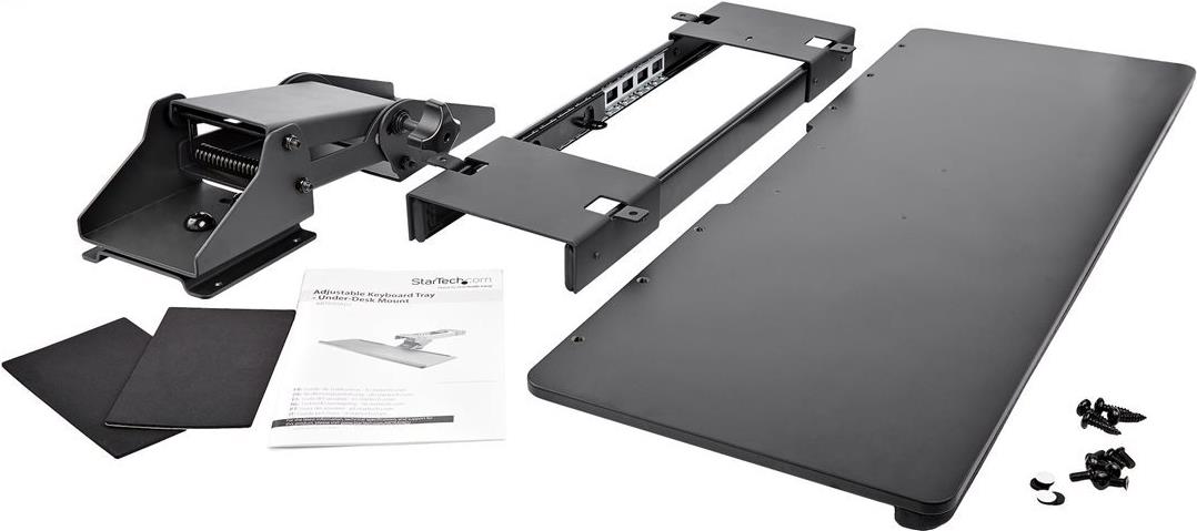 Diese Tastaturablage für den Schreibtisch entlastet Ihre Handgelenke und Arme und bringt so mehr Komfort in Ihren Arbeitstag. Zudem schafft sie wertvollen Platz auf dem Schreibtisch. Geräumiges und stabiles Design Das geräumige Design der Tastaturablage (670 mm Breite x 255 mm Tiefe) bietet Ihnen reichlich Platz für Ihre Tastatur und Maus. Ihre hochwertige Konstruktion mit 2 kg Tragkraft bietet eine stabile Plattform, die nicht vibriert, wenn Sie tippen. Maximaler Komfort dank großer Bewegungsfreiheit Das ergonomische Design dieser einstellbaren Tastaturablage, zu der eine integrierte Handballenauflage gehört, bietet große Bewegungsfreiheit zur Reduzierung von Unannehmlichkeiten und Arbeitsunfällen. Sie können damit Ihre Position für eine bequeme Arm- und Schulterhaltung beim Tippen anpassen, wodurch Sie Ihre Produktivität während Ihres gesamten Arbeitstags verbessern. Stellen Sie die Höhe Ihrer Tastaturablage einfach nach oben oder unten in einem Einstellungsbereich von bis zu 170 mm ein. Um Ihre ideale Position zu finden, können Sie die Tastaturablage von Ihrem Schreibtisch aus hineinschieben oder herausziehen. Drehen Sie für zusätzlichen Komfort den seitlichen Knopf, um die Tastaturablage in einem Bereich von +15°/-15° zu neigen. Sie können Ihre Tastaturablage sogar in einem Schwenkbereich von +20°/-20° nach links oder rechts schwenken. Mehr Platz auf dem Schreibtisch Die Tastaturablage für den Schreibtisch schafft Platz auf Ihrer Arbeitsoberfläche. Dank des Designs mit Schienen können Sie sie mit einer Auszugslänge von bis zu 320 mm unter Ihren Schreibtisch schieben, wenn Sie sie nicht nutzen. Die KBTRAYADJ wird von StarTech.com mit einer 2-Jahres-Garantie sowie lebenslangem kostenlosem technischem Support angeboten.