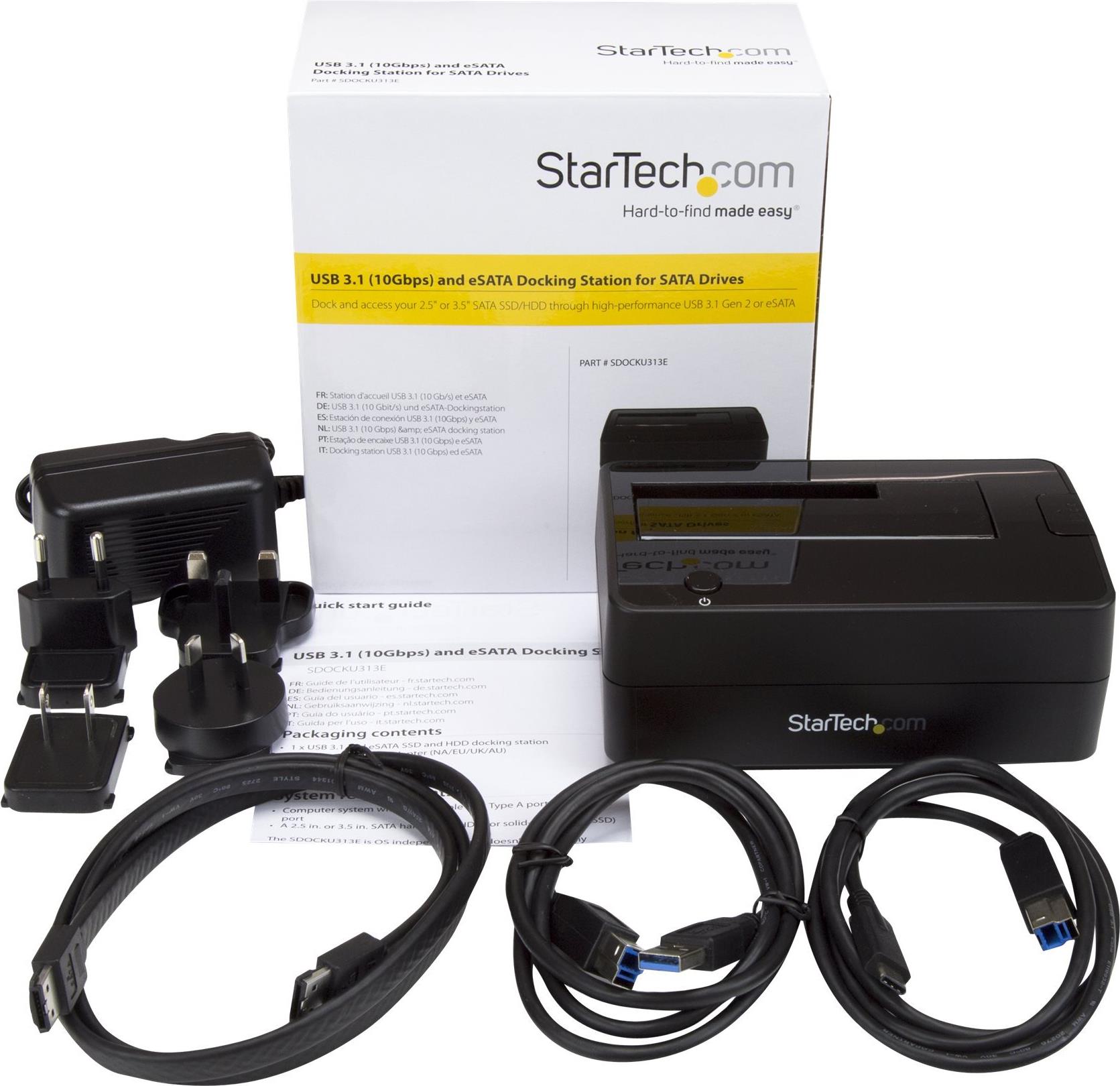 | Produktbeschreibung | StarTech.com Dockingstation für 2,5 / 3.5" SATA Laufwerke - USB 3.1 (USB-A, USB-C) oder eSATA - USB A und USB C Kabel enthalten - HDD-Dockingstation - SATA 6Gb/s - eSATA, USB 3.1 (Gen 2) |