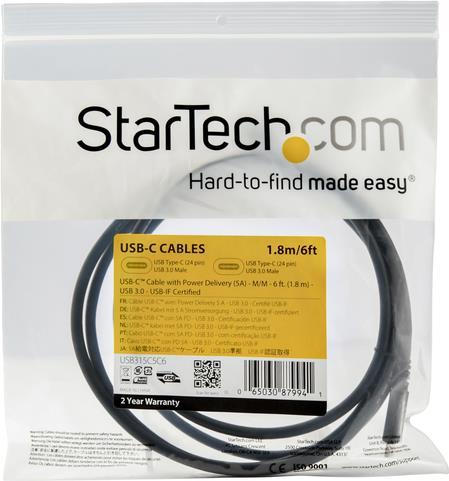 StarTech.com USB-C auf USB-C Kabel mit 5A Power Delivery - St/St - 1,8m - USB 3.0 (5Gbit/s) - USB-IF zertifiziert - USB Typ C Kabel - USB Typ-C-Kabel - 1.8 m |