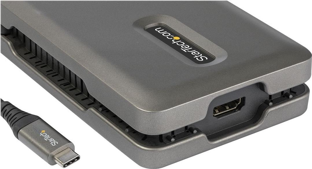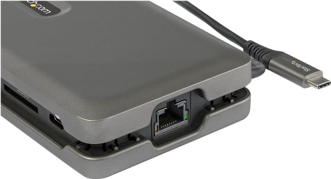 Dieser USB-C Multiport Adapter mit DP 1.4 unterstützt 4K 60Hz HDMI (HDR) und verwandelt Ihr MacBook Pro, Dell XPS oder andere USB-C Laptops oder Tablets in eine Workstation, egal wo Sie sind. Der USB Typ-C Multiport Adapter bietet einen 4k HDMI Videoausgang, zwei USB 3.1 Gen 2 Typ-A (10Gbit/s) Ports, einen SD Kartenleser und einen Gigabit Ethernet Port - alles über einen Anschluss an den USB-C oder Thunderbolt 3/4 Port Ihres Laptops. Außerdem bietet es fortschrittliches Laden über USB Power Delivery 3.0 und ein extra langes, 25 cm (10 Zoll) langes Host-Kabel für eine größere Reichweite, um mehr Flexibilität bei der Einrichtung zu bieten. USB 3.1 Gen 2 (10Gbit/s) wird auch als USB 3.1 Gen 2x1 (10Gbit/s) bezeichnet.