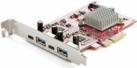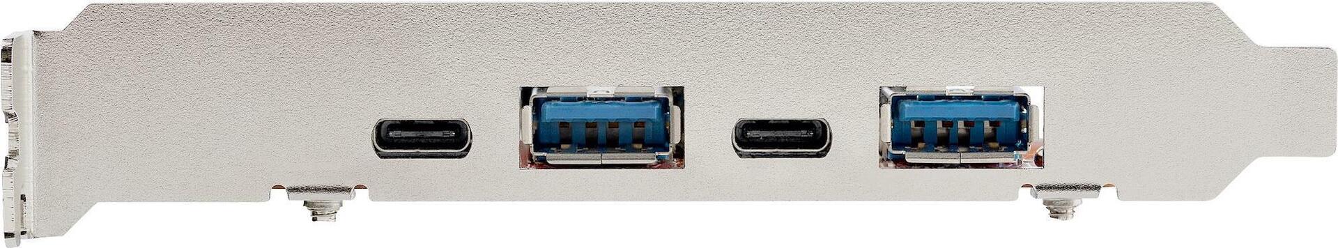 Diese USB 3.2 Gen 2-Kombikarte (10 Gbit/s) mit 4 Anschlüssen ist ideal, wenn Sie die Leistung und Konnektivität Ihres Computers noch weiter verbessern möchten. Die USB 3.2-Karte bietet zwei USB-C Anschlüsse (10 Gbit/s) und zwei herkömmliche USB-A Anschlüsse (10 Gbit/s). Durch die zwei verschiedenen USB-Anschlusstypen können Sie eine Vielzahl von USB-Geräten ganz unkompliziert an Ihren Desktop-Computer anschließen. Da die Karte über 10 Gbit/s USB-Anschlüsse verfügt, sparen Sie Zeit und vermeiden Leistungsengpässe, die häufig mit anderen Verbindungstechnologien einhergehen. USB 3.2 Gen 2 (10 Gbit/s) ist auch als USB 3.1 (10 Gbit/s) bekannt.