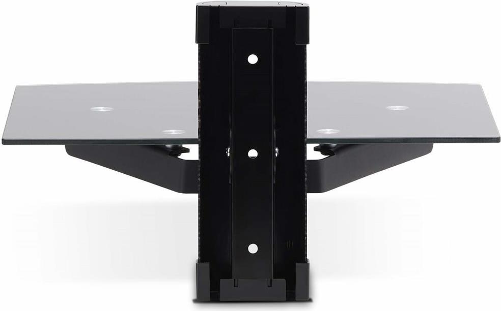 Das Regal ist entlang der 161mm langen Wandhalterung höhenverstellbar und kann so an verschiedene Gerätehöhen und -konfigurationen angepasst werden, z. B. an Videokonferenzgeräte oder einen AV-Receiver.