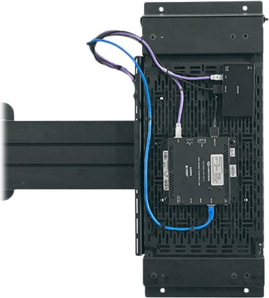Das Proximity Component Storage Slide-Lock Panel ermöglicht eine einfache, verdeckte Montage von AV-Geräten hinter Displays. Um die Wartung und den Zugang zu den Geräten zu vereinfachen, schieben Sie die Ablageplatte einfach heraus. Es kann an der Wand montiert oder an Fusion-Halterungen links, rechts oder unter dem Display angebracht werden. Die eingebaute, werkzeuglose Hebelverschlussplatte lässt sich leicht von der Schiebeverriegelungsplatte abnehmen und wieder anbringen, um die Geräte nach der Installation zu warten, ohne den Bildschirm zu berühren. Diese Ablageplatte nimmt die meisten kleinen Geräte für AV-Installationen auf. Die innovativen Schieber des CSSLP15X10 sichern die Ablageplatte und verhindern, dass sie durch einen Push-to-Open- und Push-to-Close-Mechanismus heraus- oder herunterfallen kann. Dies gibt Designern, Beratern und Installateuren die Flexibilität zu entscheiden, wo die Ablageplatte am besten hinter dem Bildschirm positioniert werden kann. Das universelle Befestigungsmuster der Lever Lock-Platte für kleine Geräte bietet die Möglichkeit, Geräte mit Kabelbindern, Klettverschlüssen oder Schrauben und Muttern zu befestigen.
