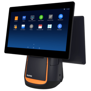 Sunmi T2s, 39,6cm (15.6"), KD, Android, schwarz, orange Kassensystem, Retail, Touchscreen, kapazitiv, 39,6cm (15.6"), Auflösung: 1920x1080 Pixel, Qualcomm Octa Core, 2,2GHz, RAM: 4GB, Flash: 64GB, USB (5x), RS232, Bluetooth, Ethernet, WLAN (802.11ac), Kassenladenanschluss, Audio, Micro SD-Slot, Kundendisplay (10" ), integrierter Bondrucker, Android (9.0), inkl.: Netzteil, Netzkabel (EU), Farbe: schwarz, orange (P01220055)