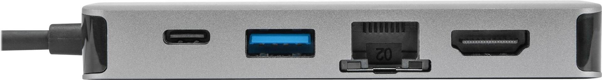 Schließen Sie Ihre USB-C-fähigen Geräte an einen einzelnen HDMI- oder VGA-Bildschirm an, während Sie gleichzeitig eine Verbindung zu einem Gigabit-Ethernet-Netzwerk herstellen und Ihre wichtigsten Peripheriegeräte - wie Mäuse, Tastaturen, Flash-Laufwerke oder Festplatten - an die USB-A- und USB-C-Anschlüsse anstecken. Außerdem haben Sie die Möglichkeit, Ihren Laptop aufzuladen und mit Strom zu versorgen, indem Sie dessen USB-C-Netzteil an den USB-C-Anschluss der Dockingstation anschließen.