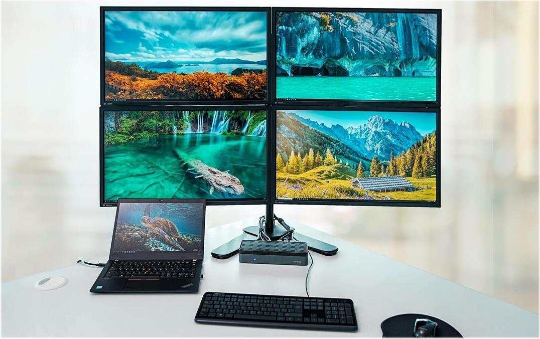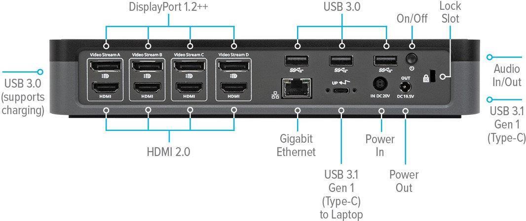 Steigern Sie Ihre Produktivität und Performance mit der ersten universellen Enterprise Class-Dockingstation für vier erweiterte 4K-Monitore. Ideal für große Unternehmen - die Targus USB-C Universal Quad 4K (QV4K) Dockingstation optimiert die Bildschirmnutzung. Dual DisplayLink DL-6910 Chip-Technologie unterstützt bis zu vier DisplayPort (3840 x 2160 p60) oder HDMI-Monitore (3840 x 2160 p50). Die Dockingstation verfügt über zahlreiche zusätzliche Anschlüsse für die Verbindung Ihrer wichtigsten USB-3.0-Peripheriegeräte und Ihres Ethernet-Netzwerks.