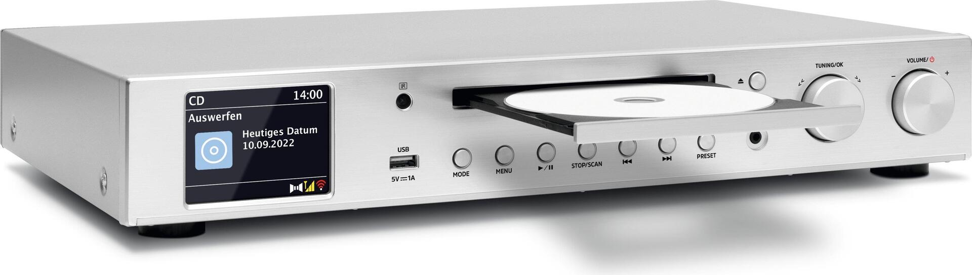 | Funktionen | CD- / MP3-Player, Radio, Internetradio, Network Media Streaming, Bluetooth Audio-Empfänger, DAB+-Radio |