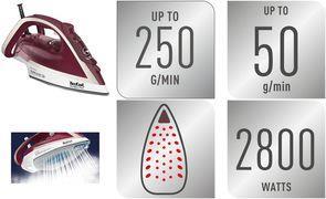 Das Tefal Ultragliss Plus Dampfbügeleisen vereint Dampfleistung mit einer eindrucksvollen Reihe an Funktionen, die benutzerfreundlich und effizient sind und ausgezeichnete Ergebnisse beim täglichen Dampfbügeln liefern. Dieses Hochleistungsbügeleisen mit höherer Dampfleistung erleichtert die tägliche Wäschepflege mit größter Effizienz. Die besonders gleitfähige Durilium Airglide Bügelsohle ist kratzfest und beständig und mit 100 % aktiven Dampföffnungen versehen, die für eine maximale Dampfverteilung sorgen. Erleichtern Sie sich die Wäschepflege mit 2800 W Leistung, einer kurzen Aufheizzeit, einer kontinuierlichen Dampfabgabe von 50 g/Minute, um Ihre Bügelarbeit schneller zu erledigen, und einem Dampfstoß von bis zu 250 g/Minute, um selbst schwere Stoffen und hartnäckige Falten mühelos zu glätten.Hauptmerkmale