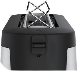 Als krönender Abschluss verfügt der Toaster über praktische Merkmale wie eine herausnehmbare Krümelschublade zum einfachen Reinigen, eine variable Toastkammerbreite zur Anpassung an die Scheibendicke und eine Anhebevorrichtung zum Herausnehmen kleiner Scheiben. Ein eleganter Edelstahl-Toaster, der perfekt in jede Küche passt.