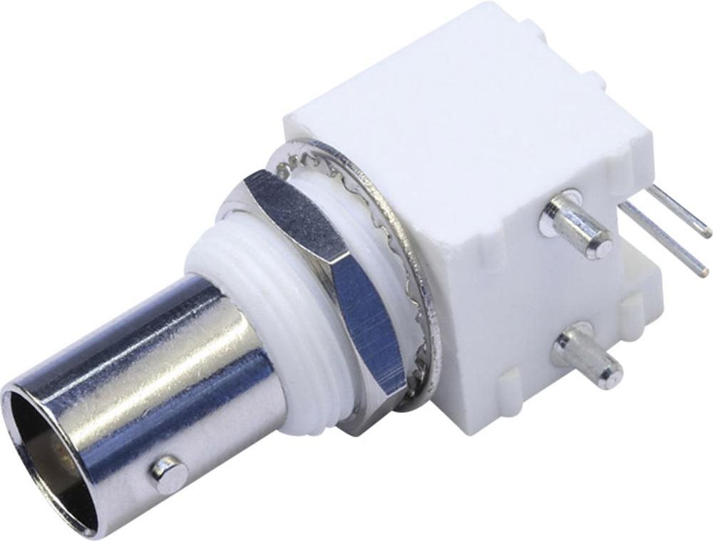 Telegärtner BNC-Einbaubuchse für gedr. Schaltung 50 Ohm, isolierter Einbau, mit Fixierstifte ohne Befestigungsschrauben, Lötpin 90°, Z04/Z34, a=16, b=35 - 1 Stück (J01001A0038)