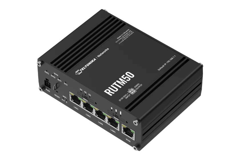 | Produktbeschreibung | Teltonika RUTM50 - Wireless 5G-Router 4-Port-Switch - 1GbE, PPP - Wi-Fi 5 - Dual-Band - an DIN-Schiene montierbar, oberflächenmontierbar |