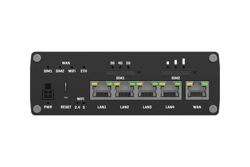 | Schnittstellen | WAN: 1 x 10Base-T/100Base-TX/1000Base-T - RJ-45 LAN: 4 x 10Base-T/100Base-TX/1000Base-T - RJ-45 Antenne: 4 x SMA - LTE Antenne: 2 x RP-SMA - Wi-Fi Antenne: 1 x SMA - GNSS-Antenne 1 x DI 1 x DO - 4-poliger Stromanschluss |