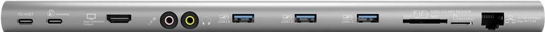 | Schnittstellen | 1 x USB-C mit Leistungsabgabe - 24-poliger USB-C mit Stromversorgung 1 x Display / Video - HDMI - 19-poliger HDMI Typ A 3 x SuperSpeed USB 3.0 - 9-poliger USB Typ A 1 x Netzwerk - RJ-45 1 x Kopfhörer - mini-Telefon 3,5 mm |