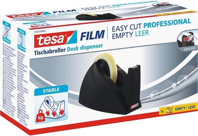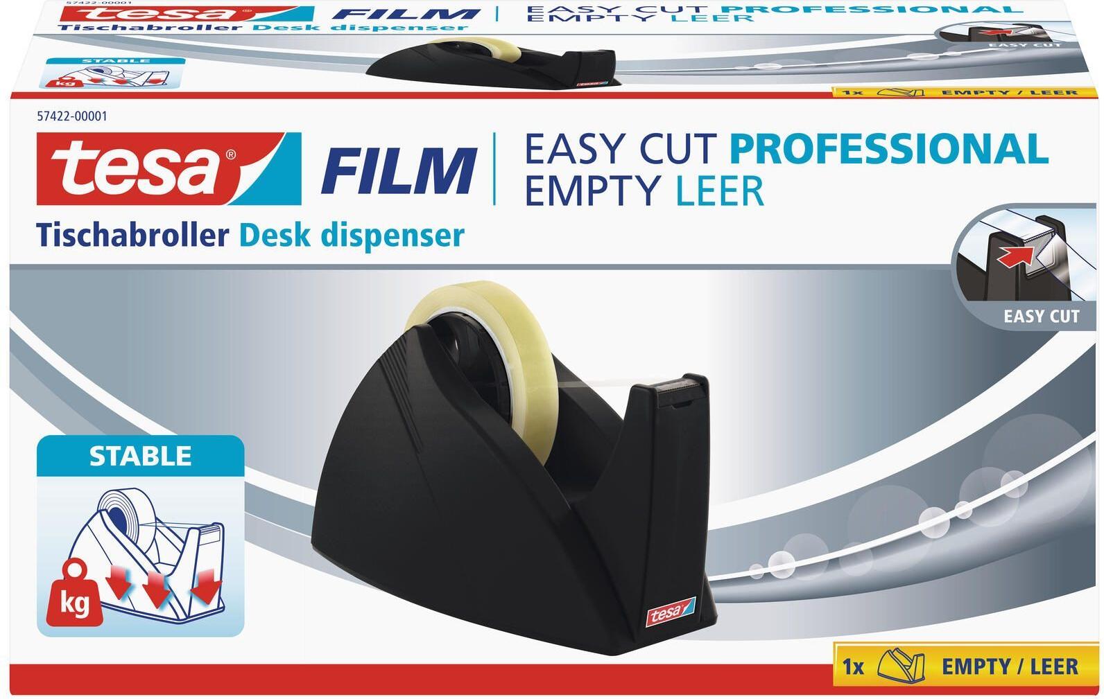 tesa Easy Cut Professional Tischabroller, schwarz unbestückt, für Klebefilme 25 mm x 66 m, mit Zackermesser (57422-1)