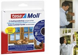 Die tesamoll® P-Profil Gummidichtung ist eine Klebelösung zum Abdichten von größeren Spalten an Fenstern und Türen und lässt sich einfach montieren. Für Spalten von 2 - 5 mm Spart bis zu 35% der Heizkosten ...